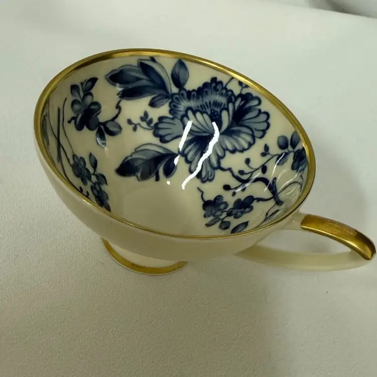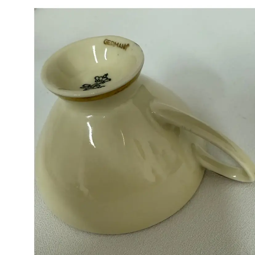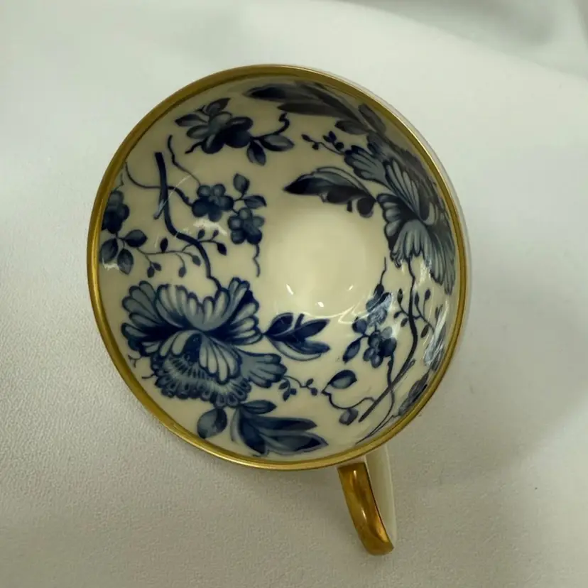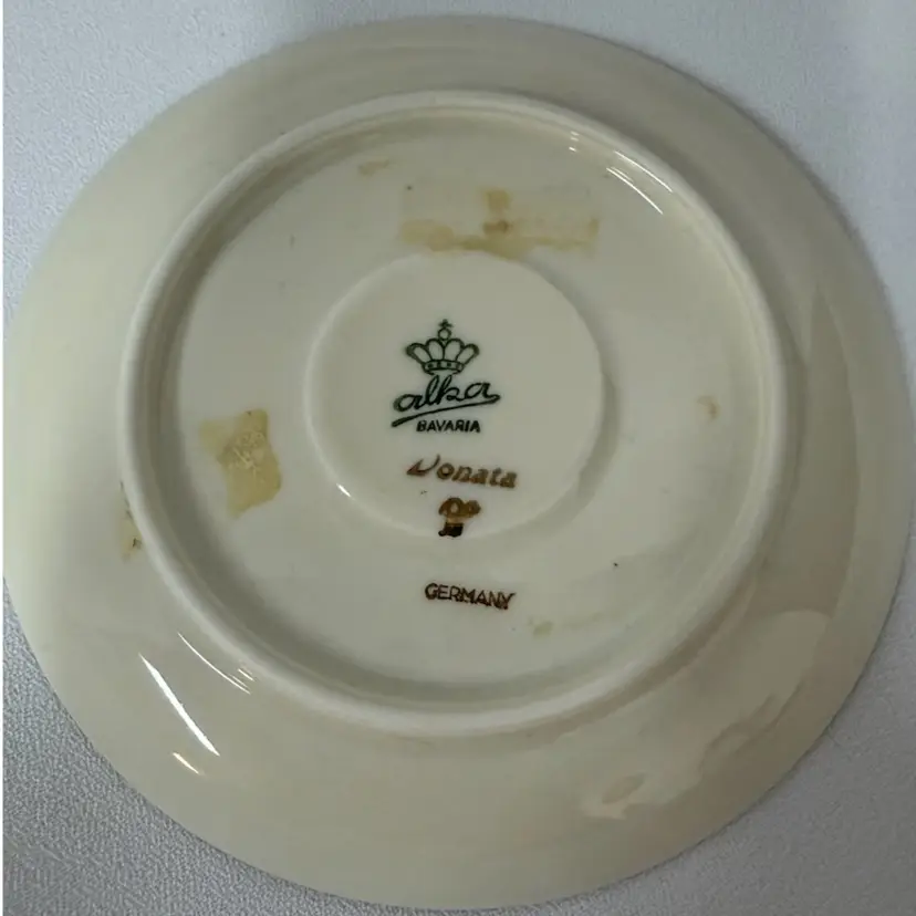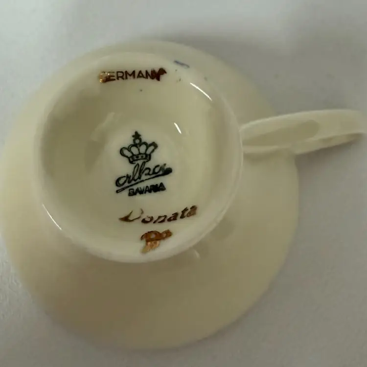 Blue Donata Alka Bavaria tea cup and saucer. Germany. Cup is 2 3/8 tall and 3” across. The saucer is 4 5/8” across. In great condition. A beautiful set. I refund any shipping overages.