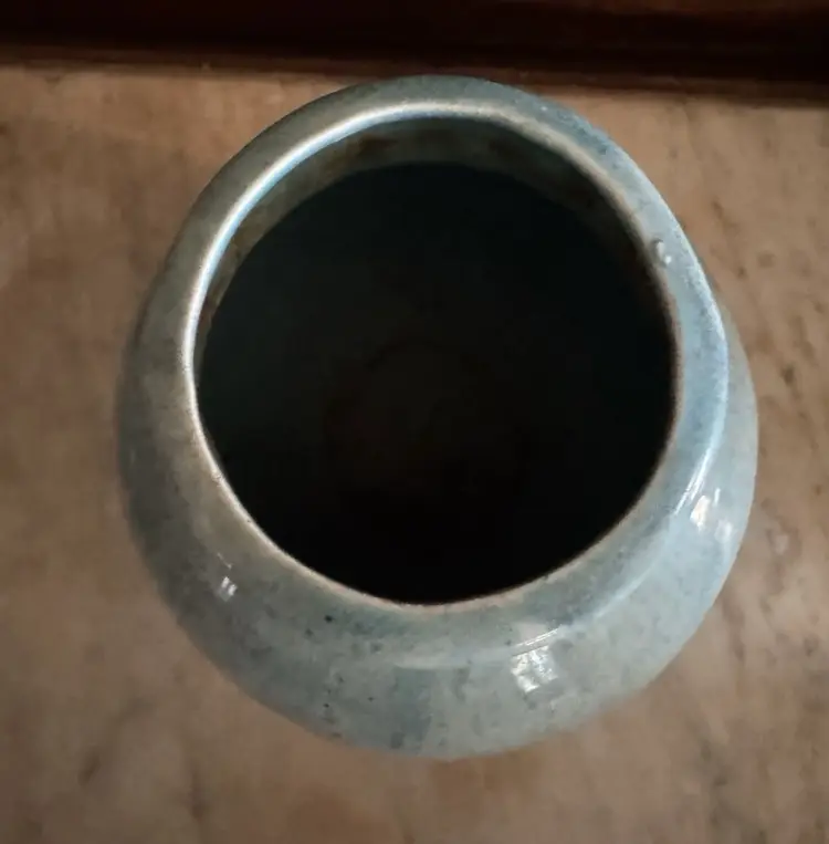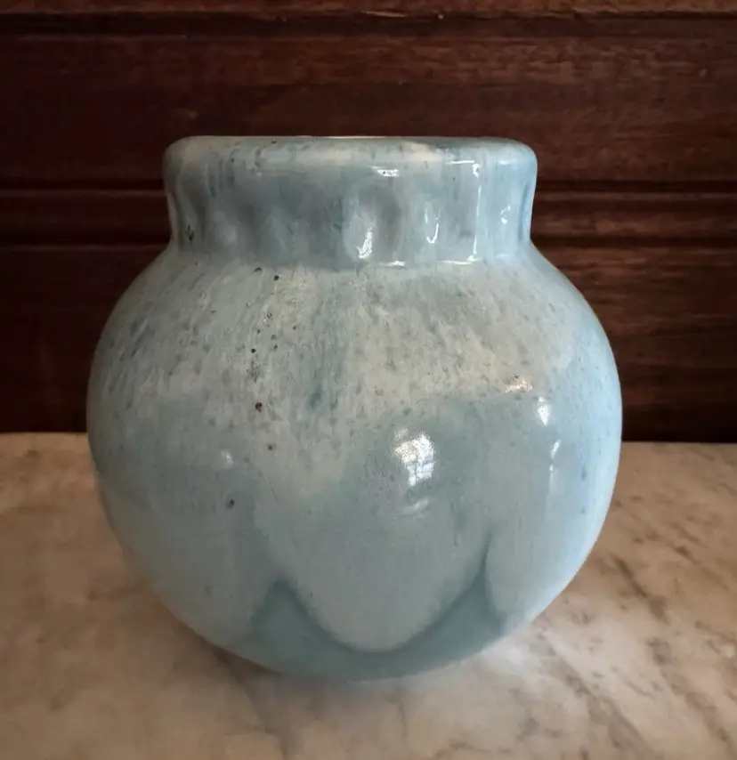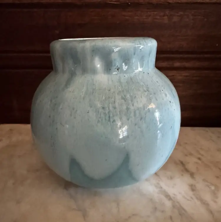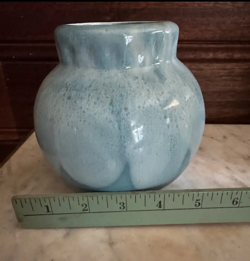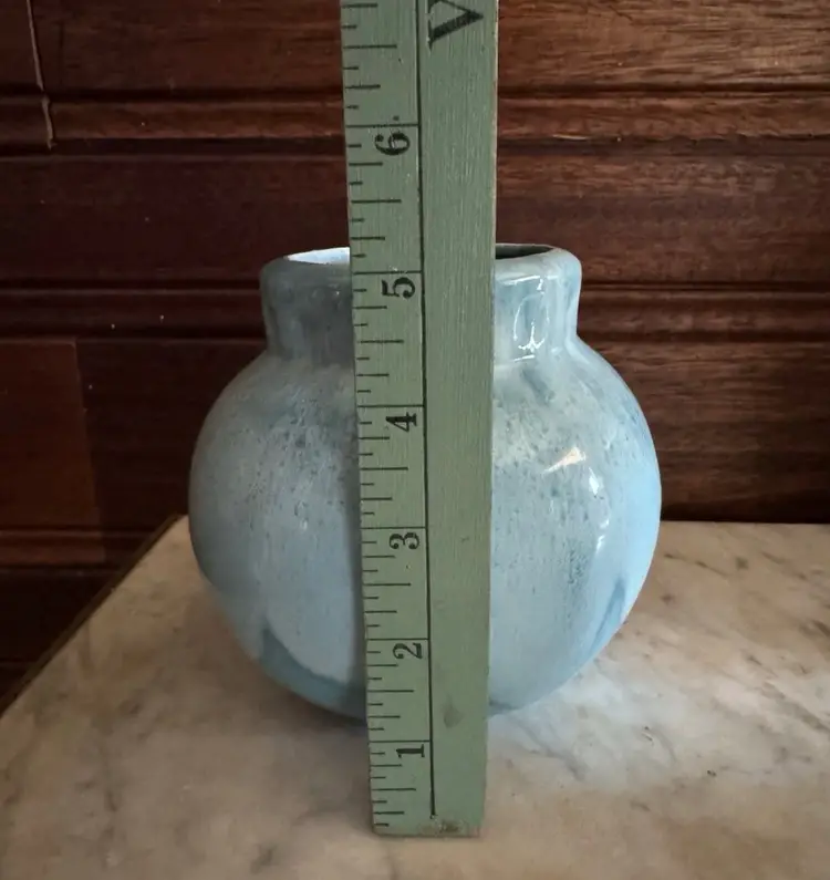 This beautiful Poppy pottery vase features a stunning blue drip glaze design. The vase is an original with an impressed backstamp. It is made of high-quality clay and is handmade with great care and attention to detail. The production technique used to create this vase is pottery, which gives it a unique and one-of-a-kind appearance.