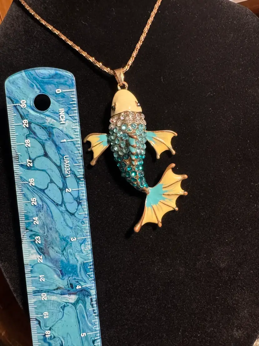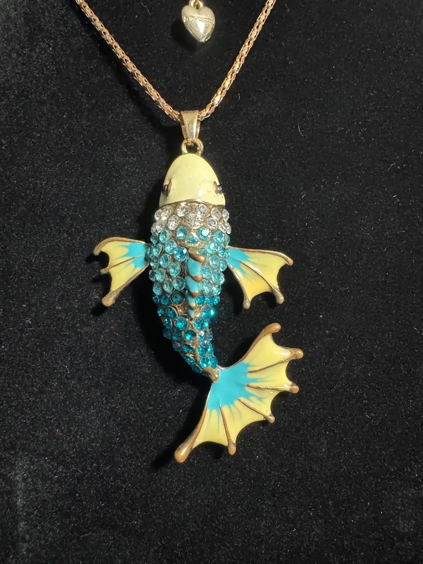 Betsey Johnson Necklace Fish Blueish Oriental Collectible Decorative Nice.
