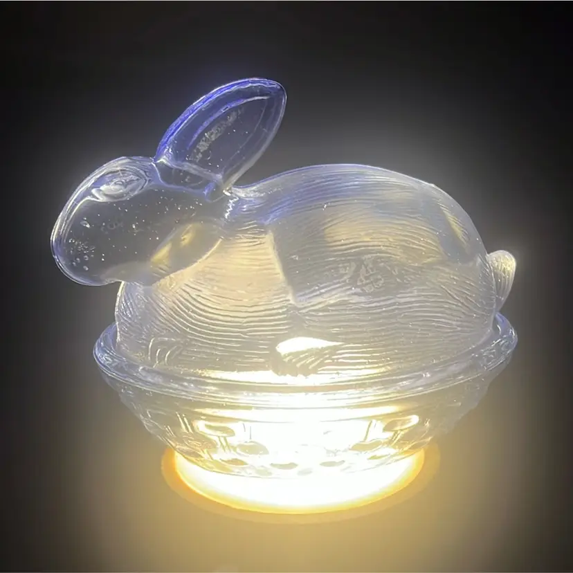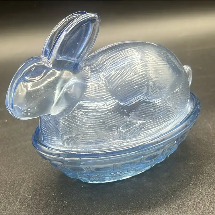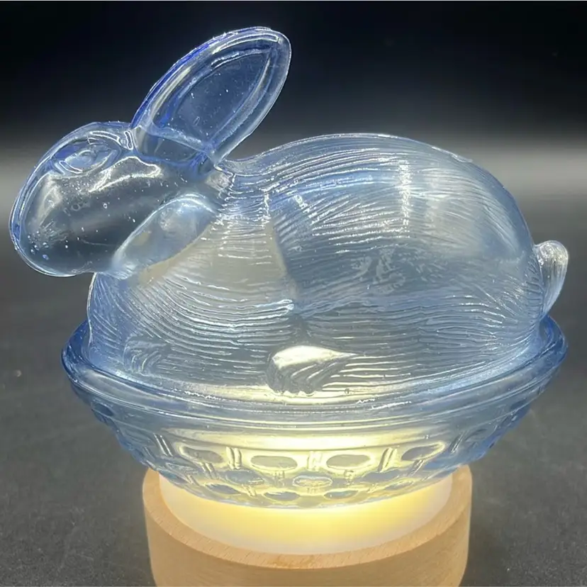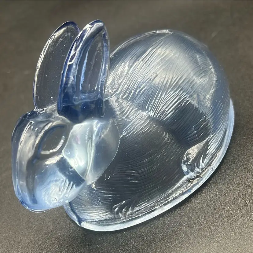 Bunny on weaved basket Translucent Textured Not marked Approximately 5 1/2” x 4”