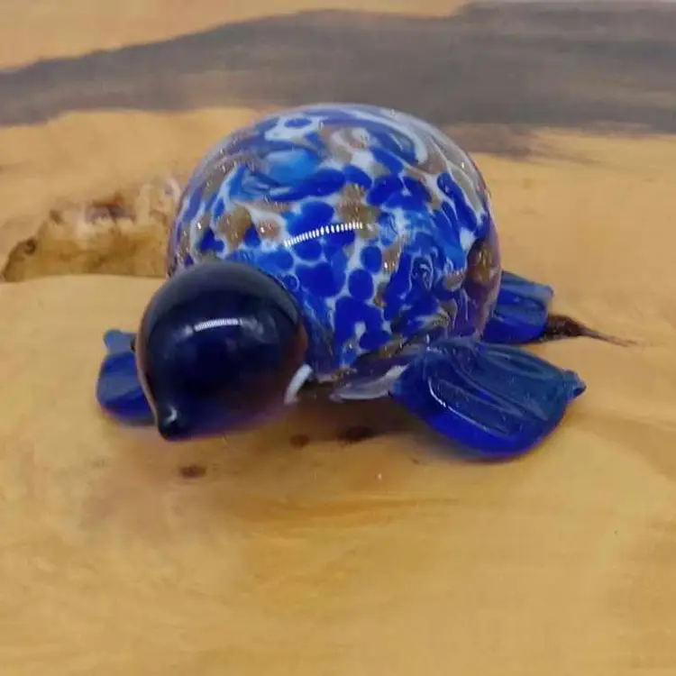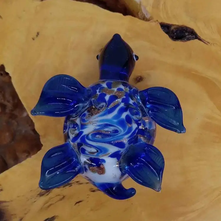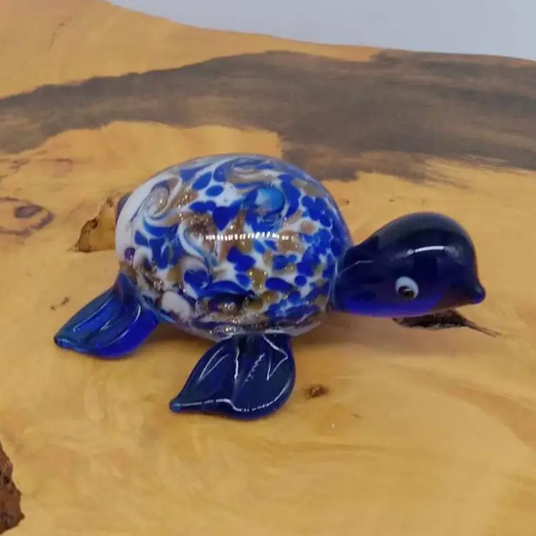Here's an adorable glass turtle. He's blue with gold glitter swirls. He's 2.5 inches from nose to tail and has no chips or cracks.
