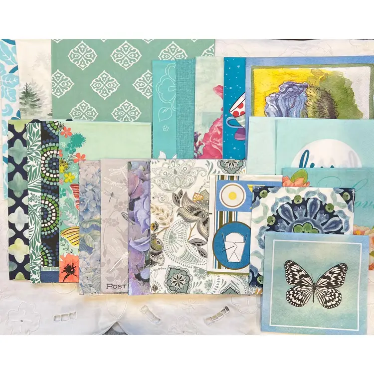 Two or 3 ply napkins in a selection of lovely blue-green shades and patterns....sure to please every taste.
