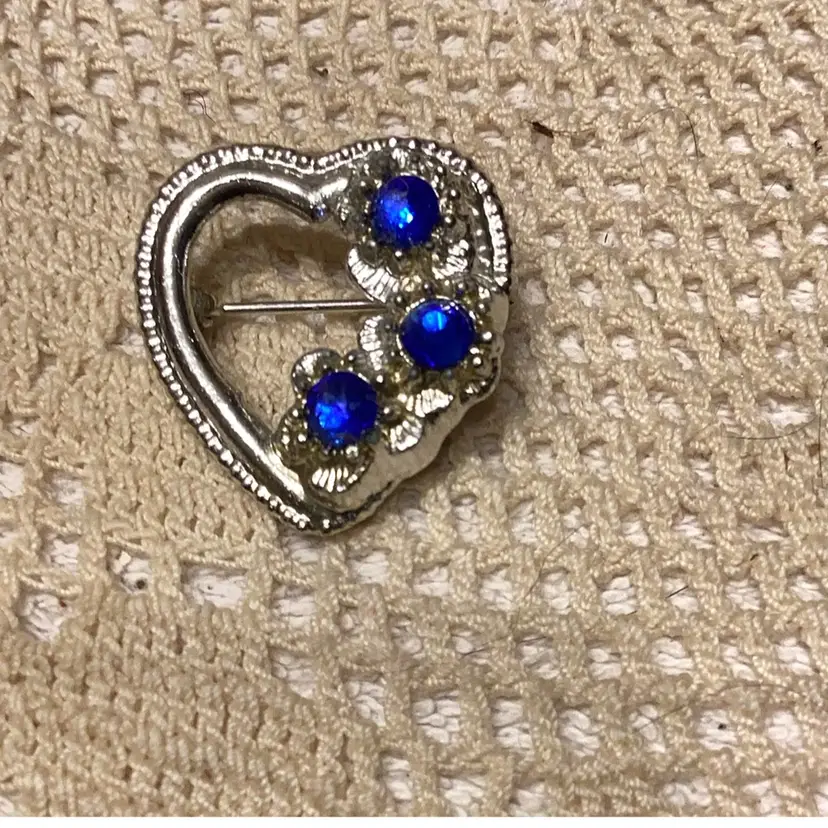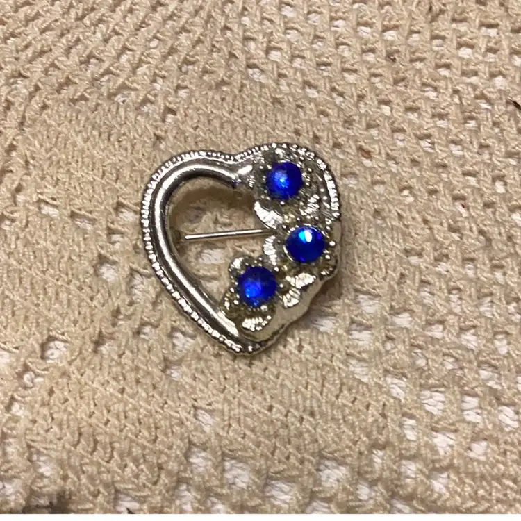 Heart brooch with blue stones