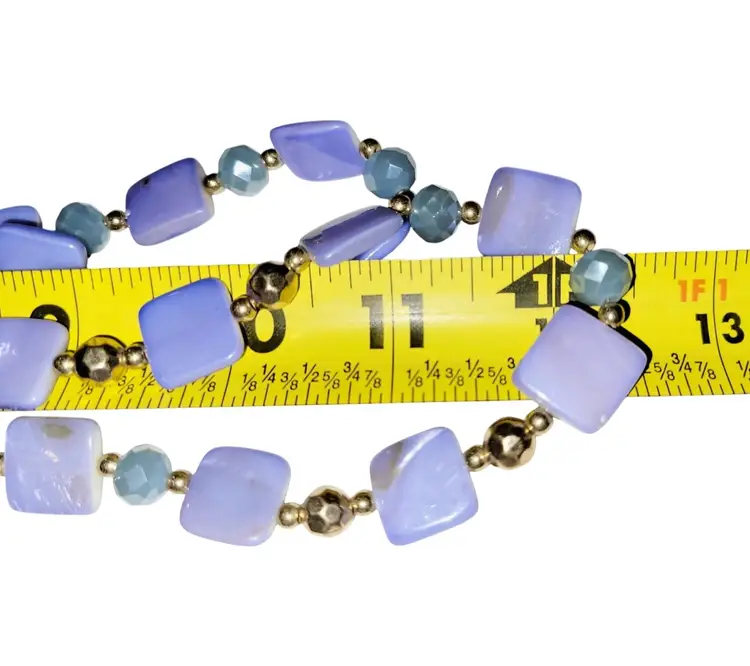 This antique-inspired double-layered necklace showcases calming blue lace agate and chalcedony beads, accented with gold-tone spacers. A timeless accessory.