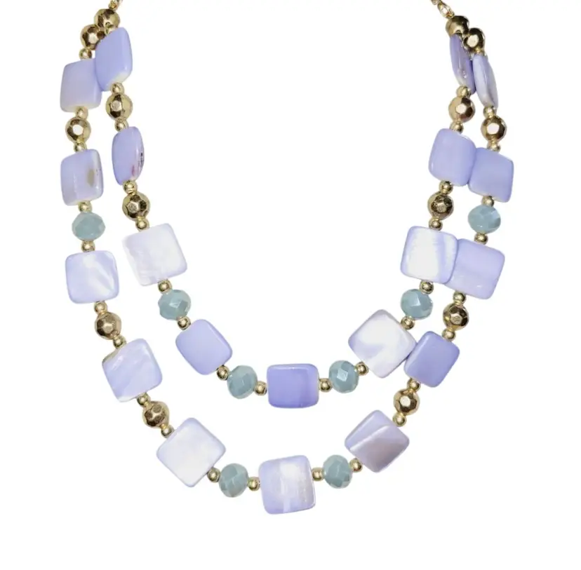 • Double-layered design • Gold-tone lobster clasp with adjustable extender • Square and round bead shapes • Measures approximately 25 inches • Vintage aesthetic appeal