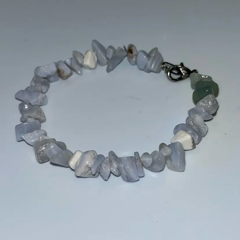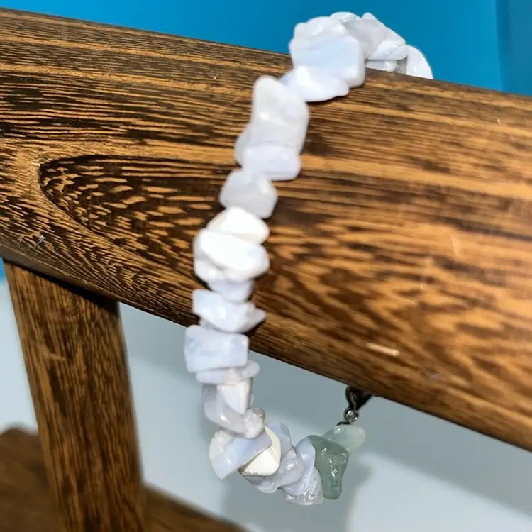 Blue Lace Agate Bracelet 6 1/2” Long Lobster Clasp