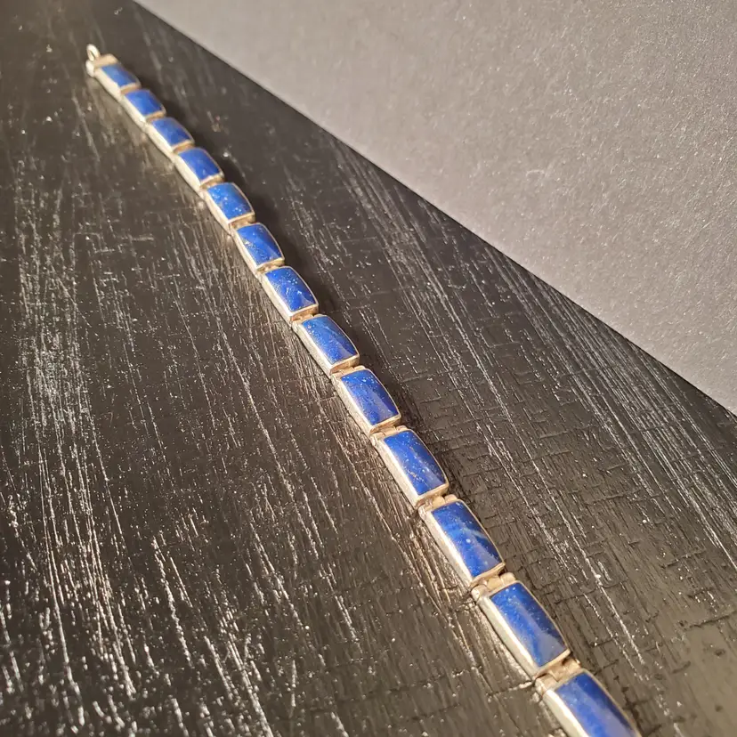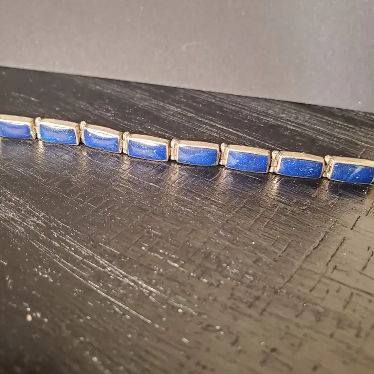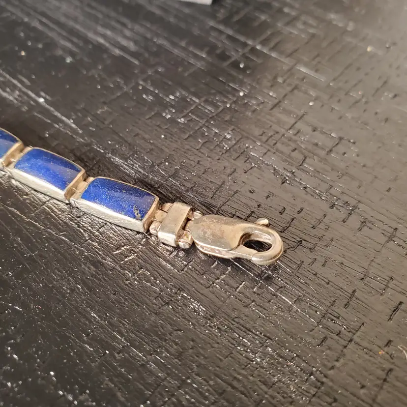 Beautiful Lapis Lazuli bracelet. Marked 950. 7 5/8" from clasp to clasp.