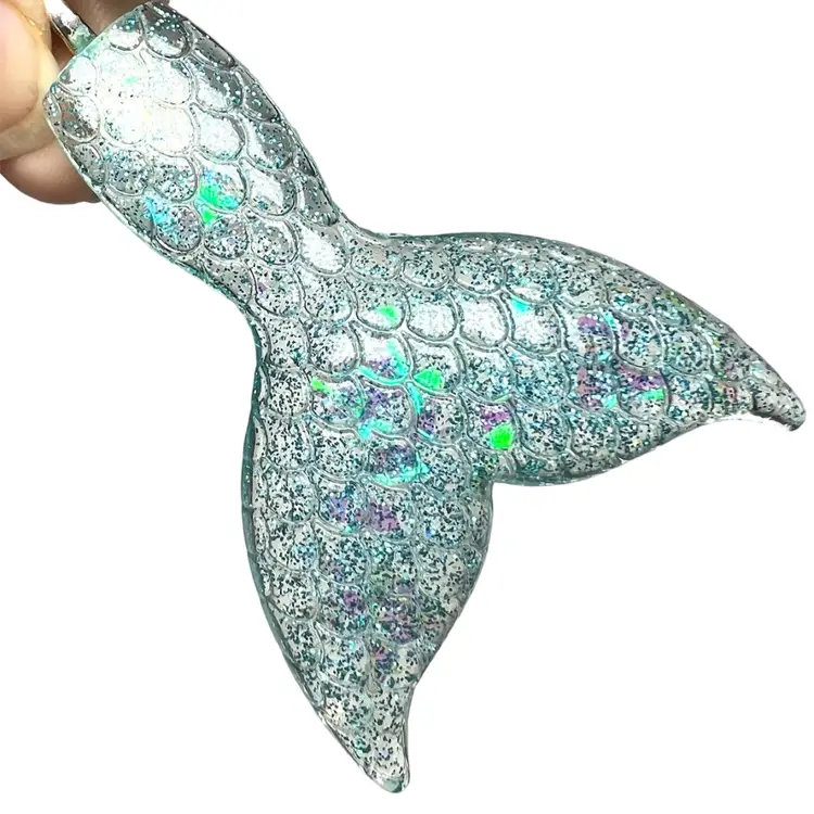 Handmade by me 🫶 Your choice of light blue or dark blue Resin and pretty blue pigments & glitter 2-1/2” long x 1-3/4” wide Just keep swimming!