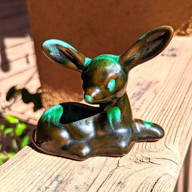 Blue Mountain Pottery Fawn Drip Glaze Blue Green Brown Redware Vintage