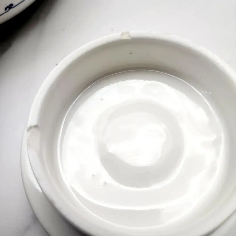 3 1/2in high to top of Lid Handle. 4 cups Condition: Good. 2 chips on bottom of lid.