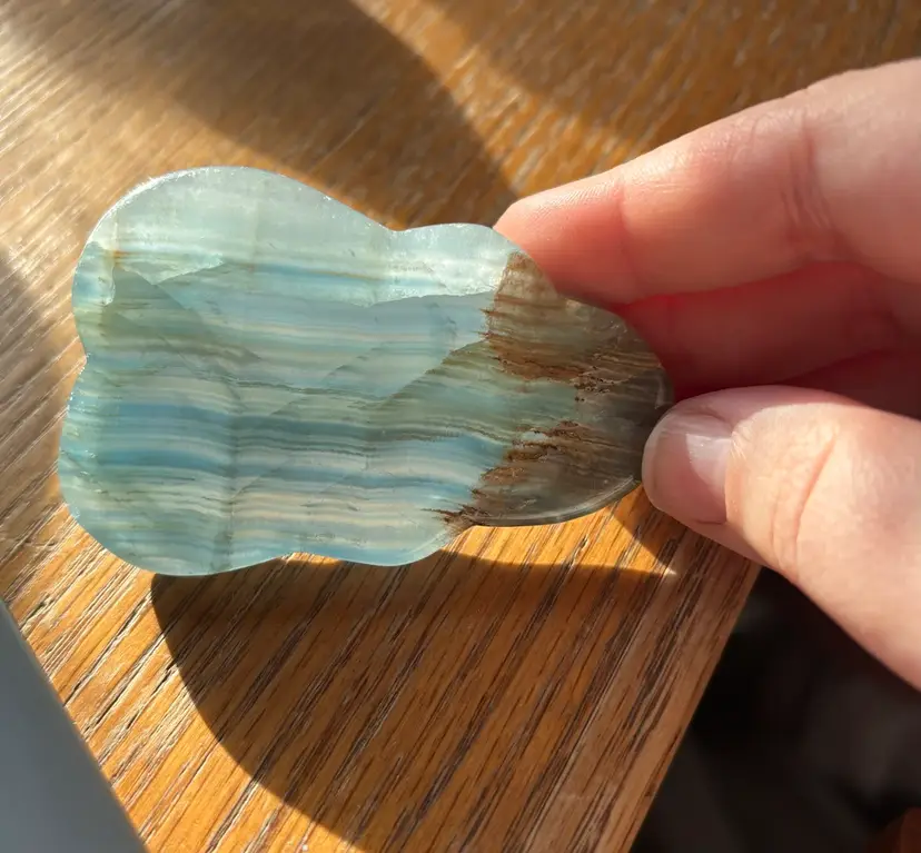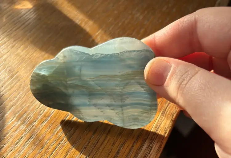 Unique, cloud-shaped crystal. Made from blue onyx.