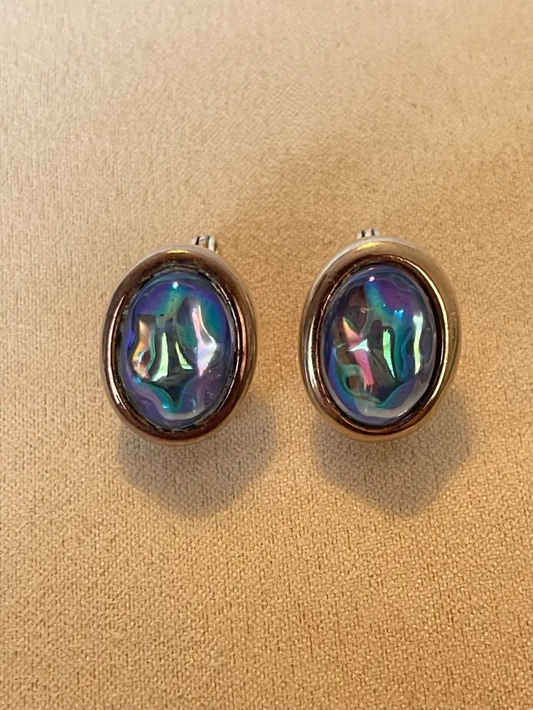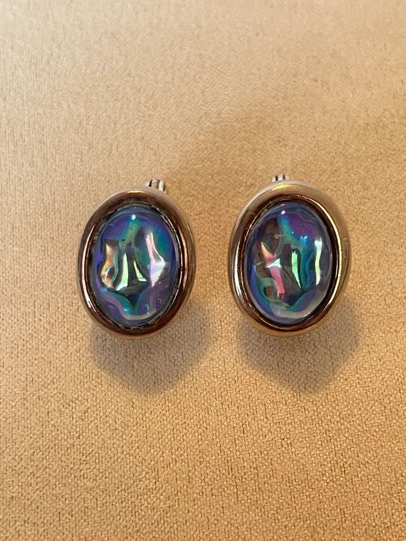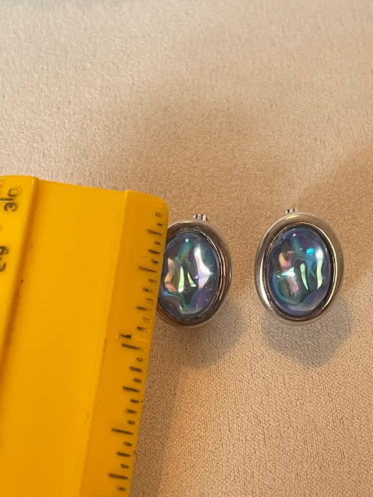 Blue rainbow vintage clip on earrings Approximately 3/4” Excellent vintage condition with subtle wear. Please see pictures.