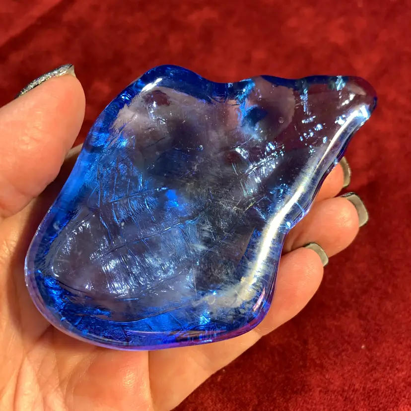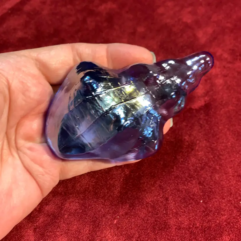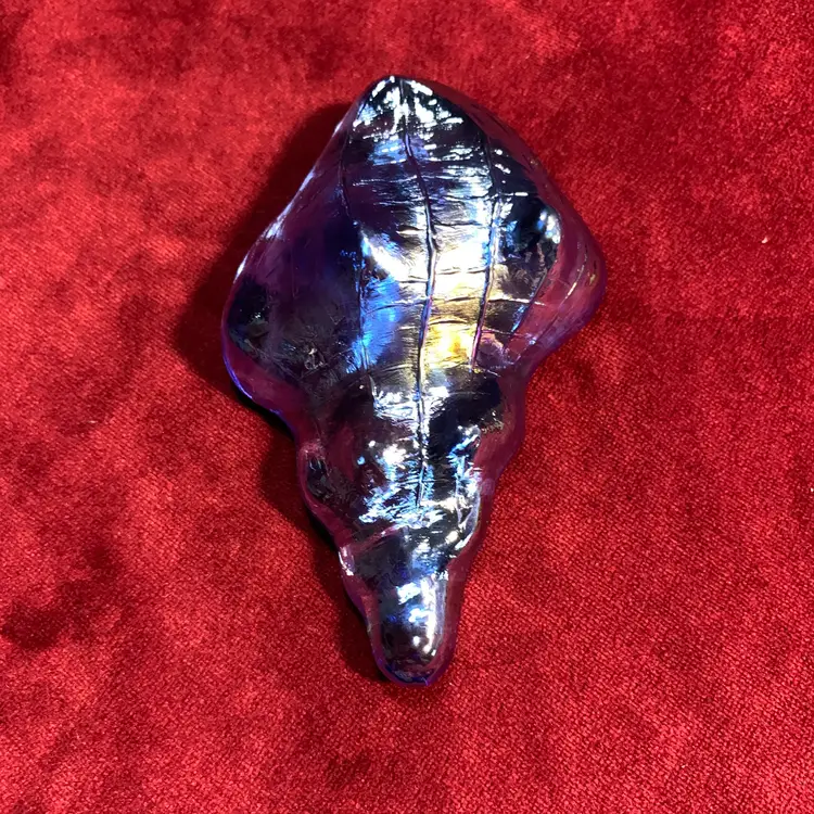 This has a beautiful iridescence. No chips or cracks. Measures 2 1/2 inches across, 4 inches wide and 1 1/4 inches tall.