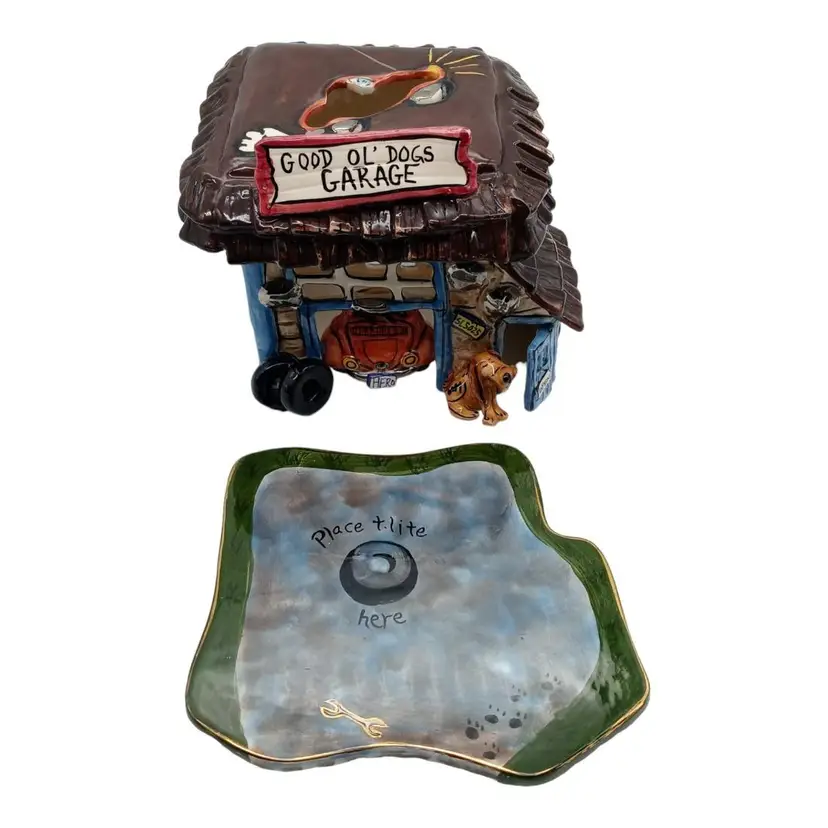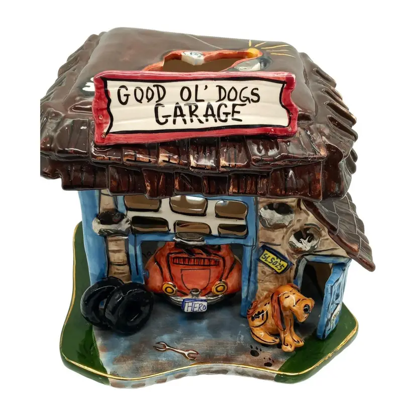 Blue Sky 2003 Heather Goldminc Ceramic Good Ol' Dogs Garage Tealight with Base: