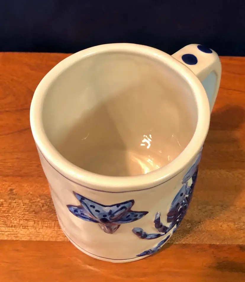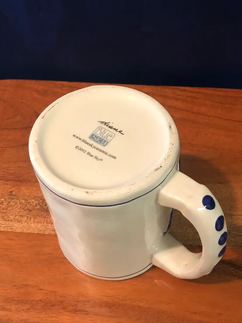 Here we have a Blue Sky Diane Ceramic Mug CRAB and STARFISH in blue, dated 2012. This mug has no cracks, chips or damage.