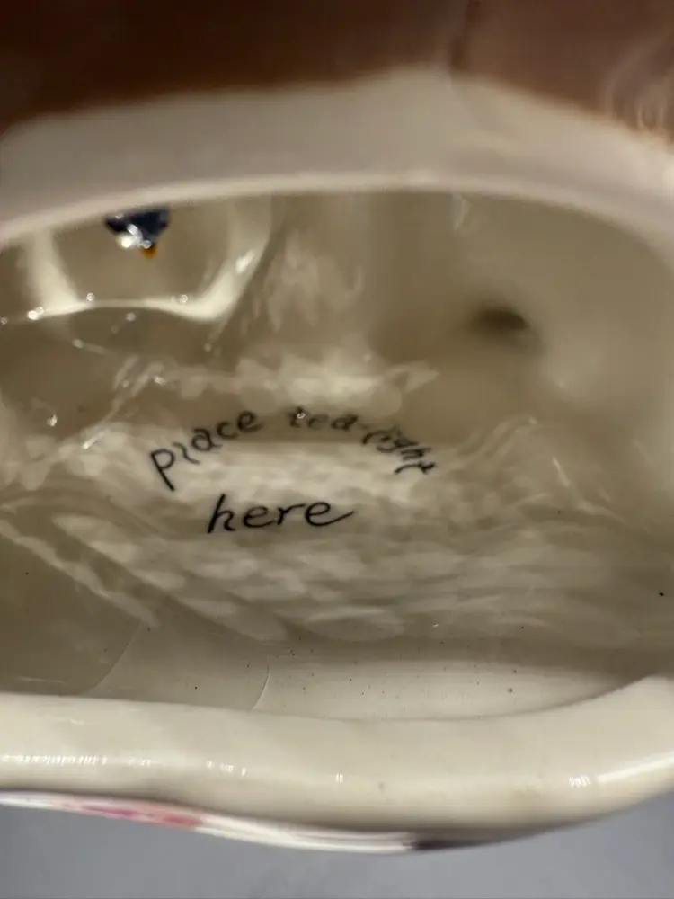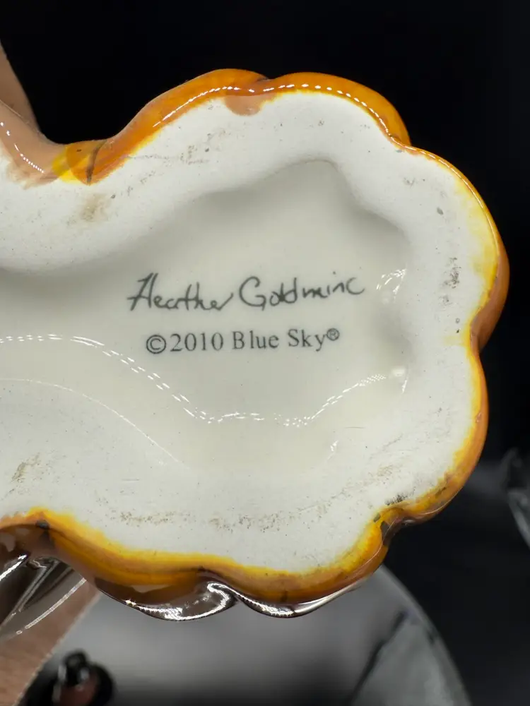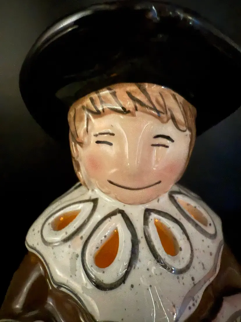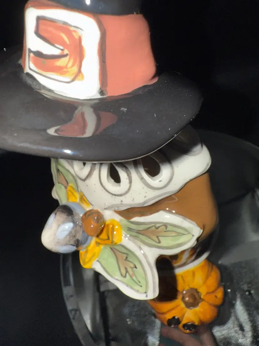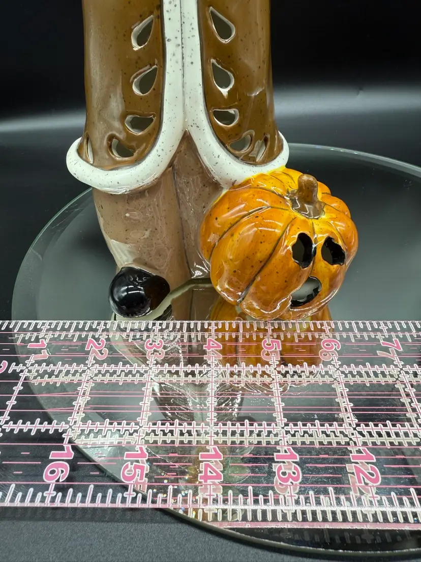 12" Pilgrim with Offerings and Pumpkin at his feet by Heather Goldminc, Blue Sky Pottery Tea Light Holder, No Chips No Cracks