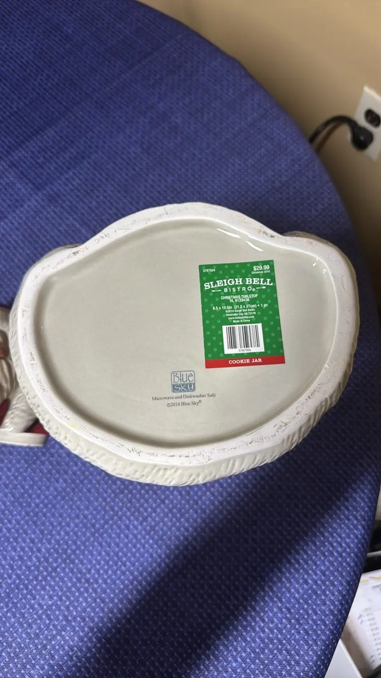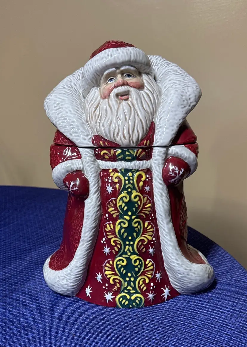 2016 • Blue Sky • Santa Claus • Cookie Jar • 11” tall 8.5” wide Celebrate the holidays with this charming Santa Claus cookie jar. Featuring vibrant red and white colors, it's perfect for adding a festive touch to your home decor. Seems brand new with no damage at all Really nice! (98295257)