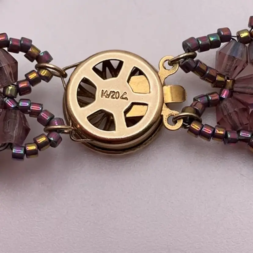 Clasp marked gold filled. From an artist's Estate in Southern California. In addition to beadwork, she was a professional porcelain painter.