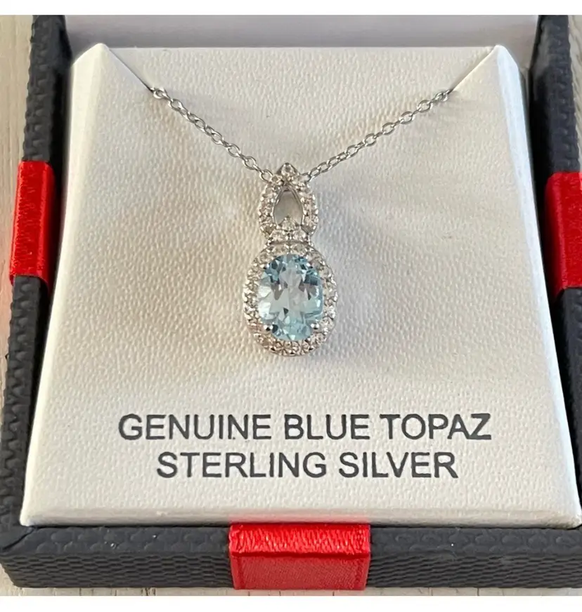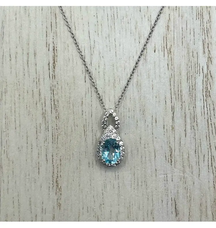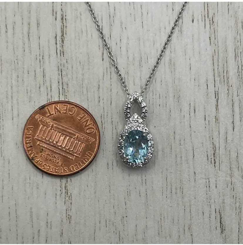 Beautiful blue topaz and white sapphire pendant and necklace Sterling silver Approximately 18”