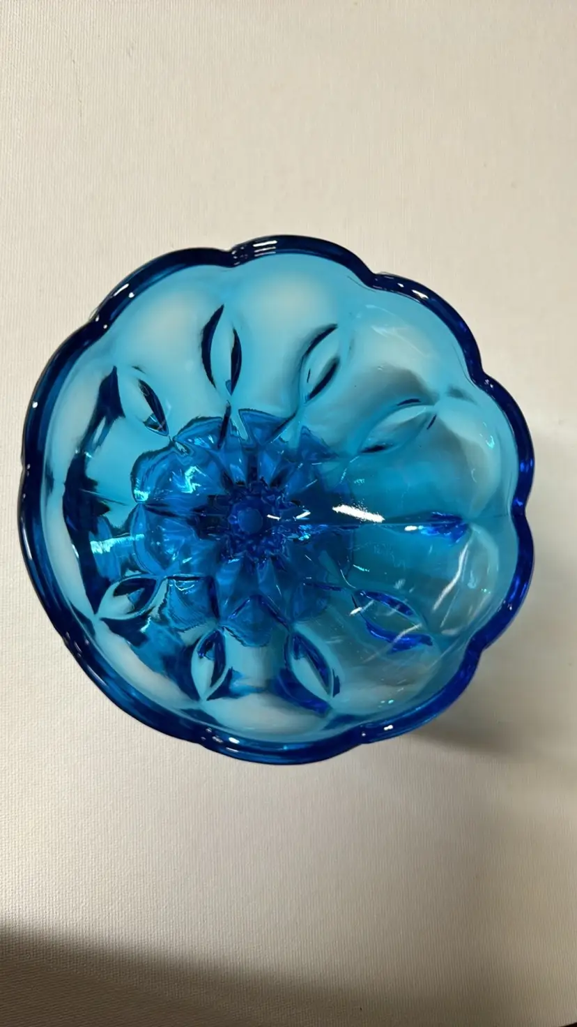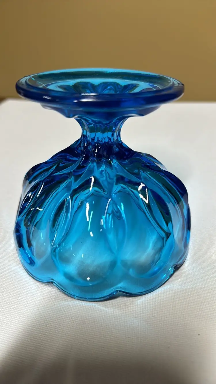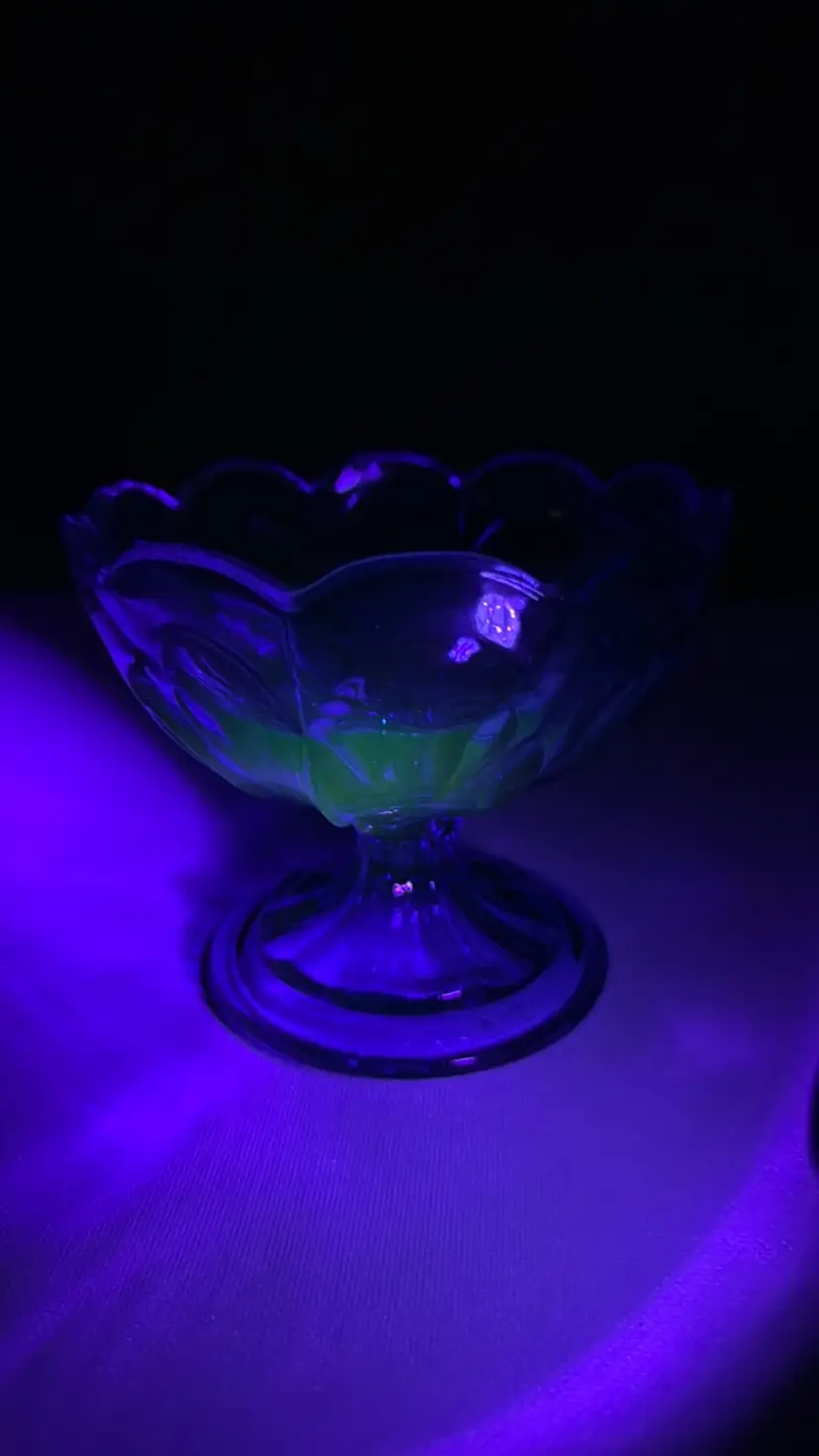 Vintage Blue UV Reactive Glass Anchor Hocking Fairfield Dessert Compote Dish 3.75” tall 4.5” diameter No breaks or chips Unique (2352924gb)