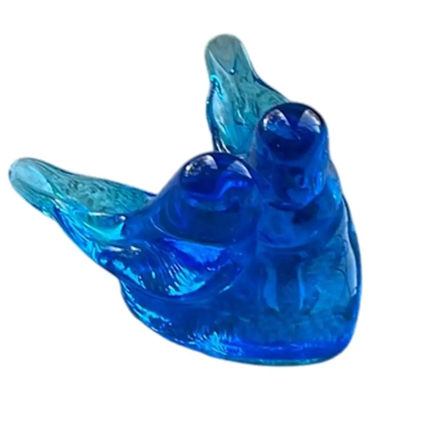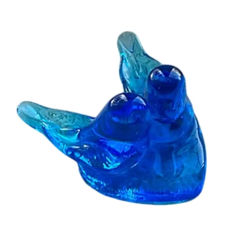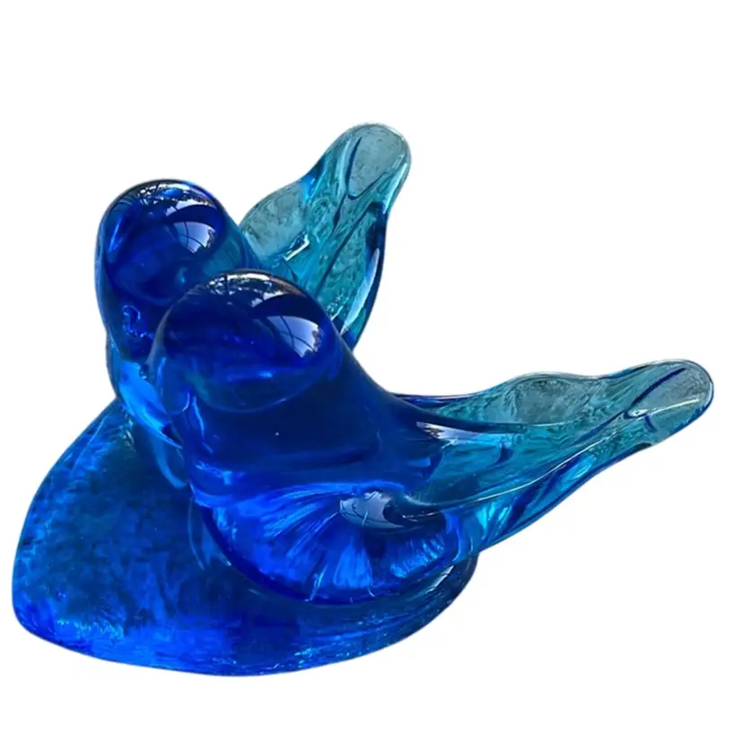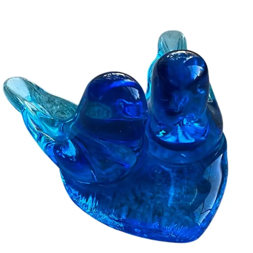 Iconic Bluebird of Happiness Pair of Lovebirds on a heart shaped base. Marked Leo Ward 1998. Meadures approximately 4” across and 3” tall. No chips or cracks.