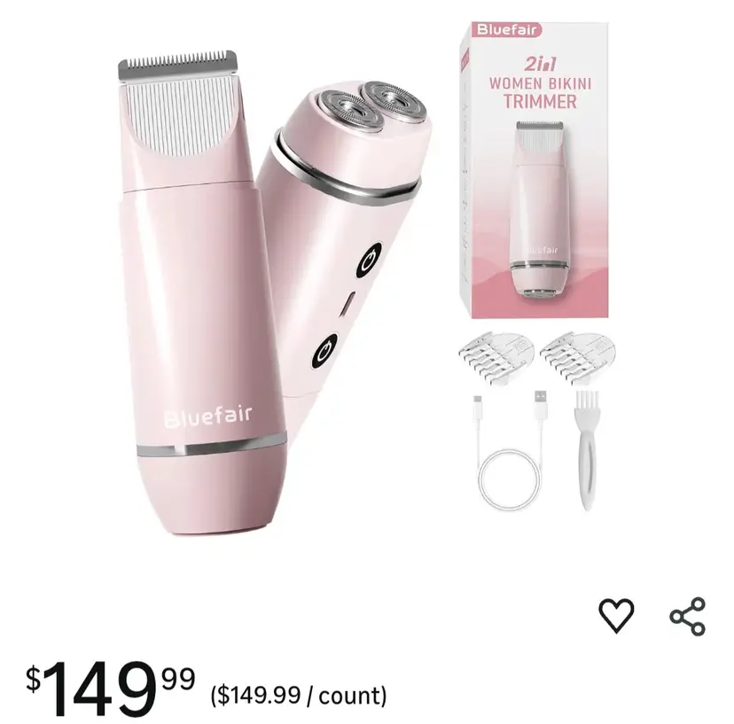 Get smooth, effortless hair removal with the Bluefair 2-in-1 Electric Shaver. This dual-head system includes a full-body shaver for legs, arms, underarms, and bikini areas, plus a precision facial/bikini trimmer for the upper lip, cheeks, and chin.