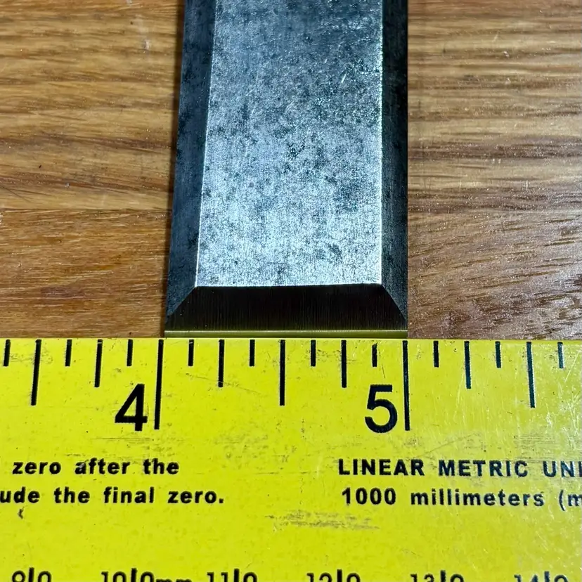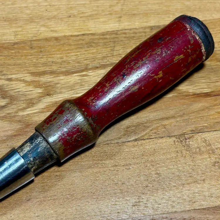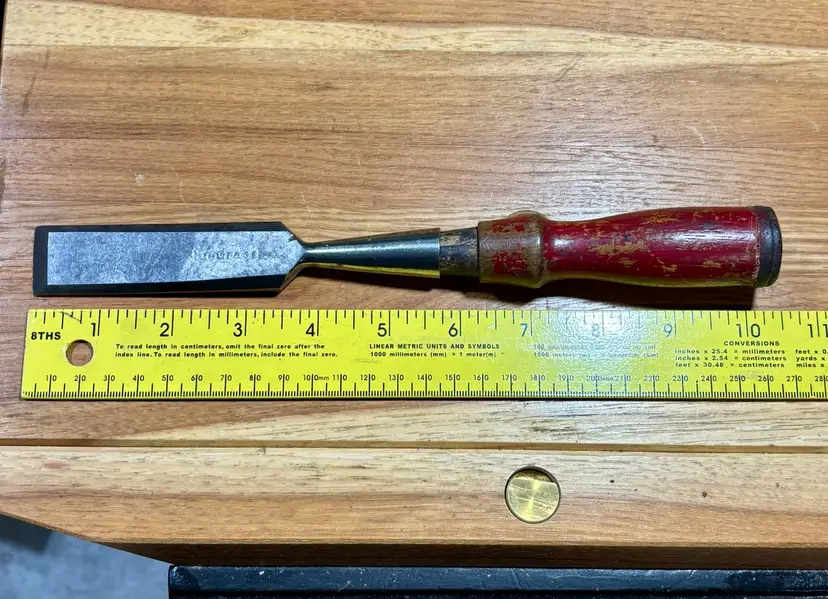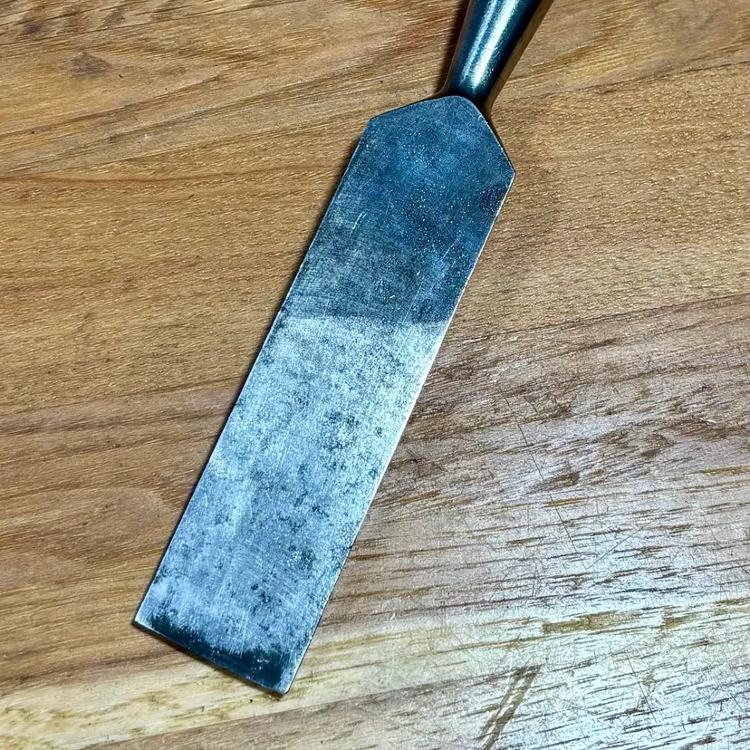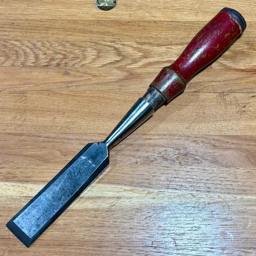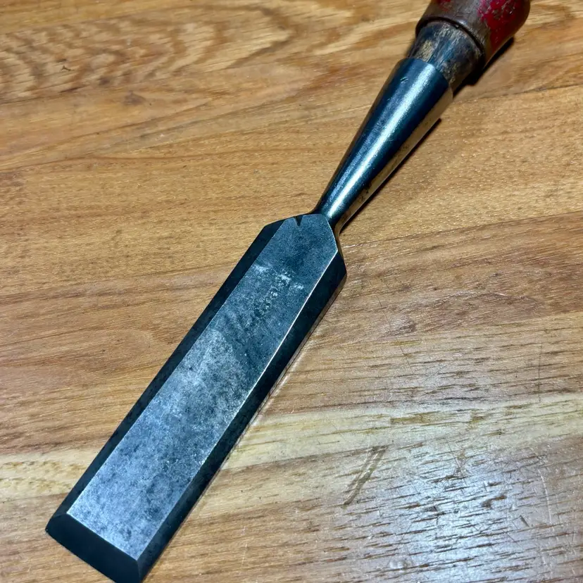 Bluegrass 1" Socket Chisel w/ Nice Hardwood Leather Capped Handle. 25 degree bevel, needs final honing, handle is similar to those found on the old Stanley 750 series.