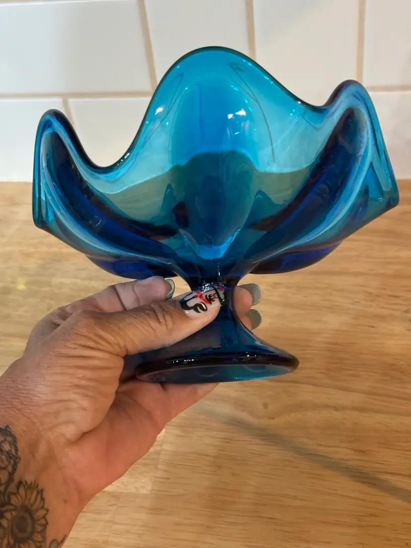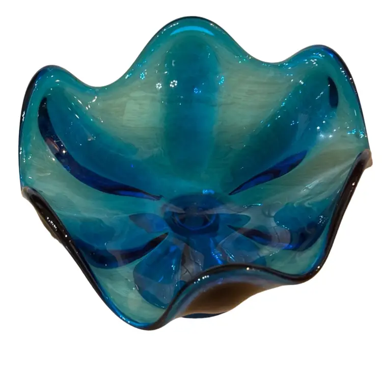 Blueing/blue Viking Epic 6 Petal Green 6-3/4" Crimped Compote