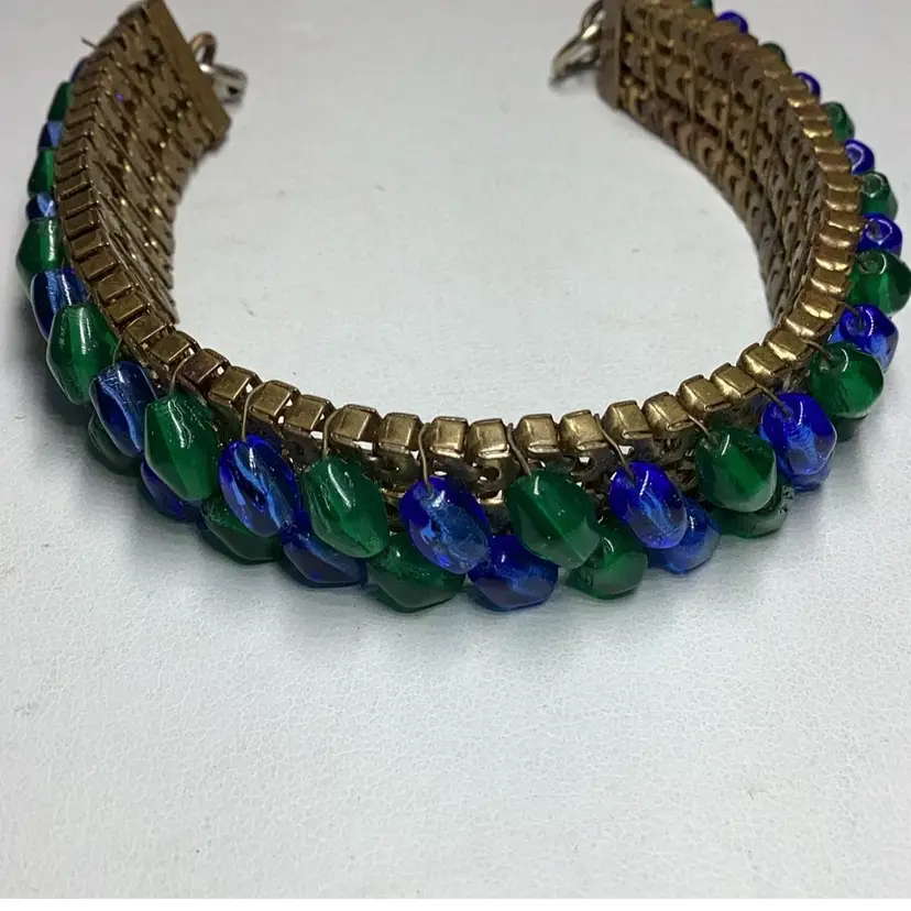 Blurb& Green Glass Bead Bracelet 7” No Missing Stones