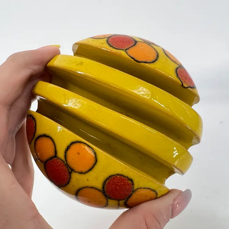 This paperweight is attributed to Bo Melander. It is Danish modern in style and marked on the bottom. It measures approx 3.5” wide. There are no chips or cracks.