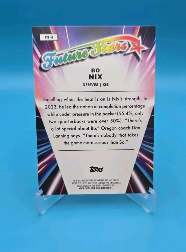 Bo Nix 2024 Topps Chrome RC insert Future Stars. NM or better condition. Shipped PWE.