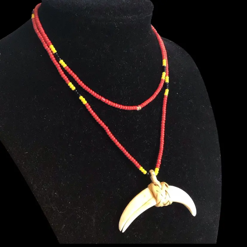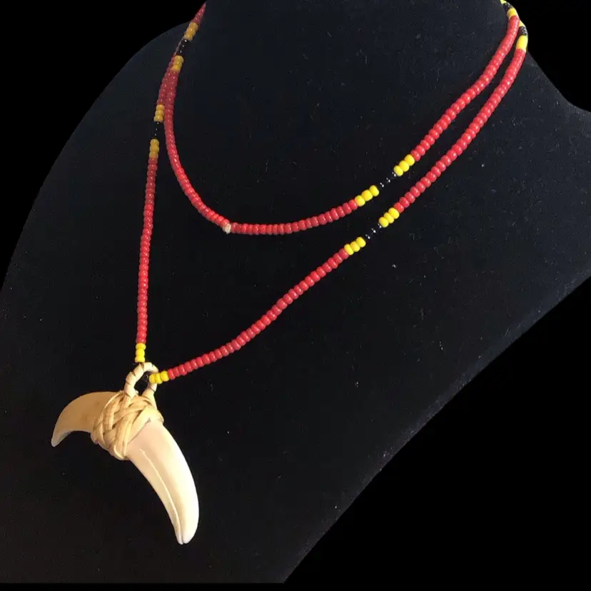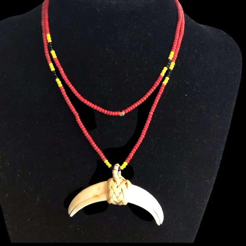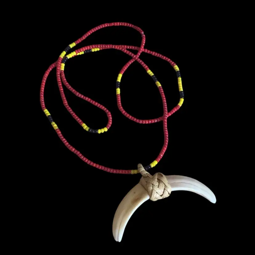 Boar tusk with braided natural raffia bale, 26” unisex. #475