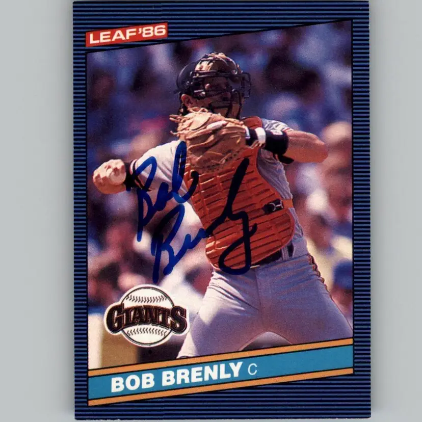 Authentic 1986 Leaf baseball card featuring Bob Brenly of the San Francisco Giants, adorned with his signature. A treasured item for Giants fans and autograph card collectors. Your purchase aids Signatures For Soldiers in helping homeless and disabled veterans.
