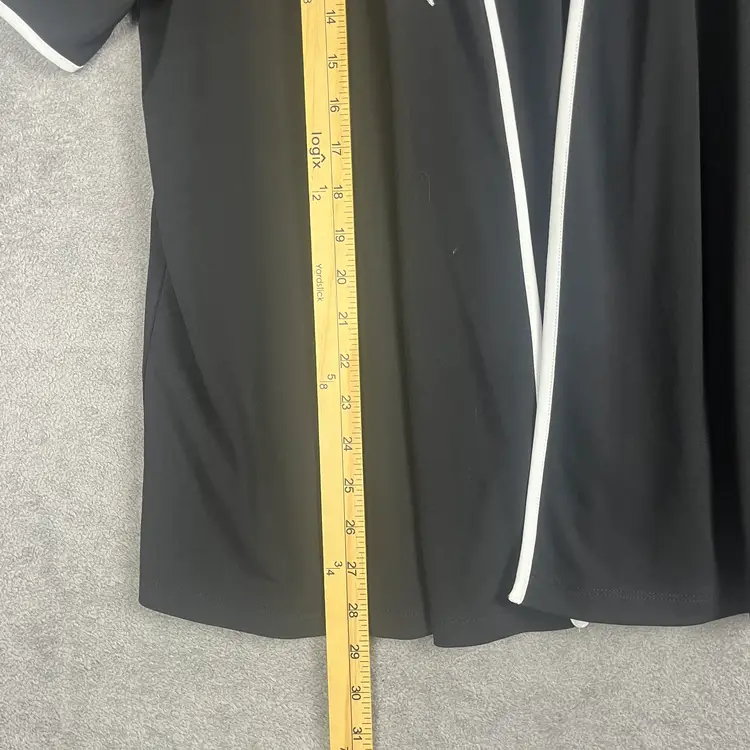 Details Size: Womens M Color: Black and White Fabric Cardigan: 49% polyester, 45% rayon, 6% spandex Fabric Tank: 91% polyester, 9% spandex Style: Two Piece Set Classic Artsy Wearable Art Original Retail: Approximately $79 to $99 depending on season Condition: Excellent preowned See pictures for measurements.