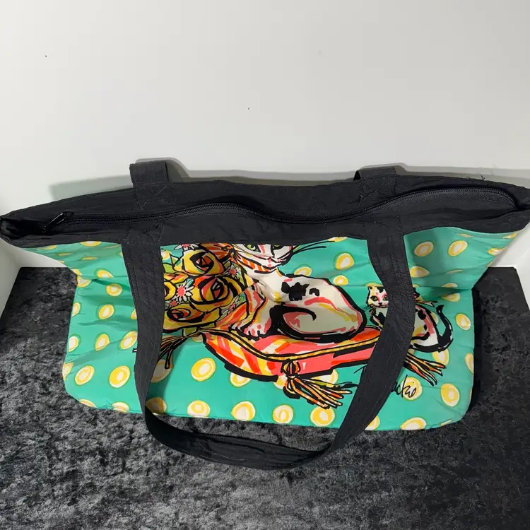 Tote is lined with a pocket.