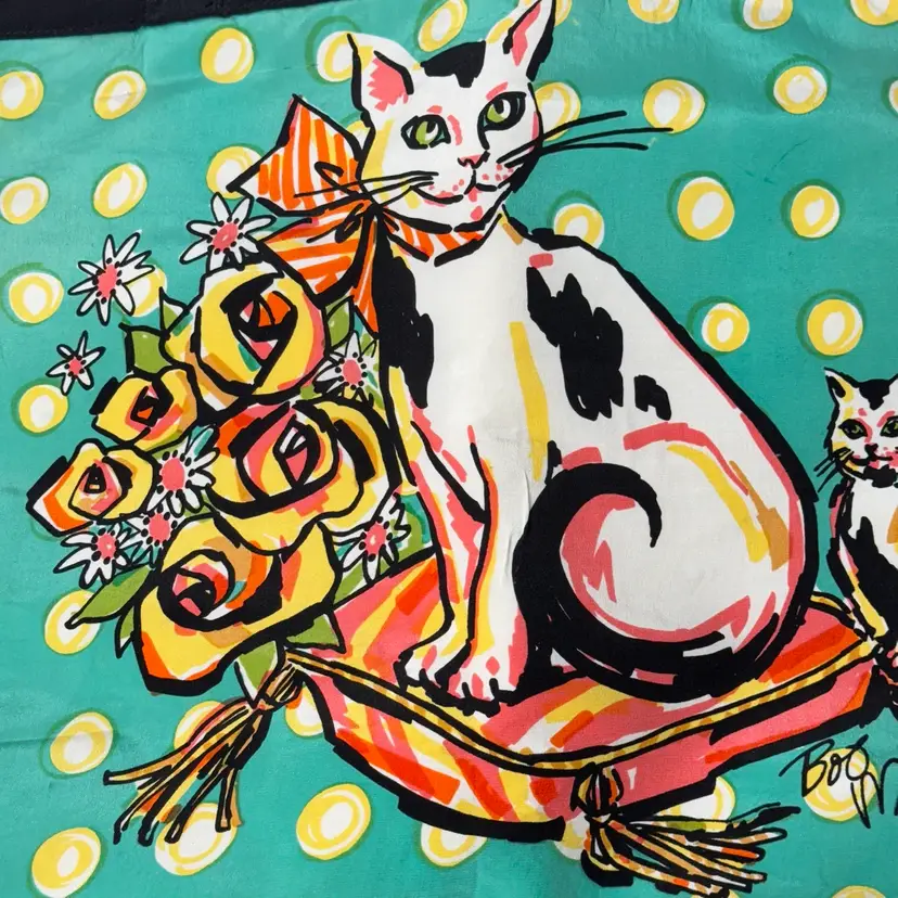 Beautiful colors in excellent condition, no holes, no tears, no big stains, no smells, couple pin size spots. About an inch down after border is a pulled thread or very noticeable but I want to make sure list what I see. See all pictures as they are part of the description.