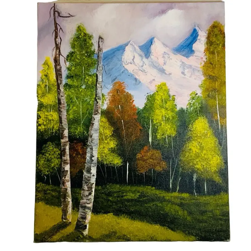 This is a stunning mountain scape scene. The painting is in excellent condition. Bought at auction. Impressive lineage. 20” by 16” on one inch canvas. https://youtu.be/9DU6bunvD_g?feature=shared