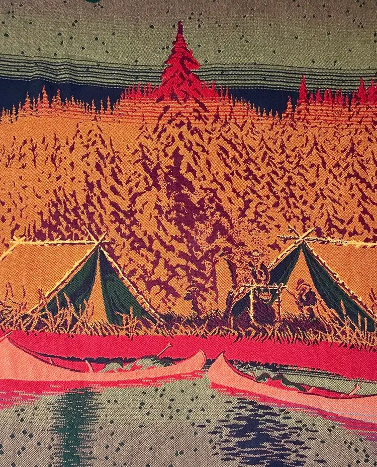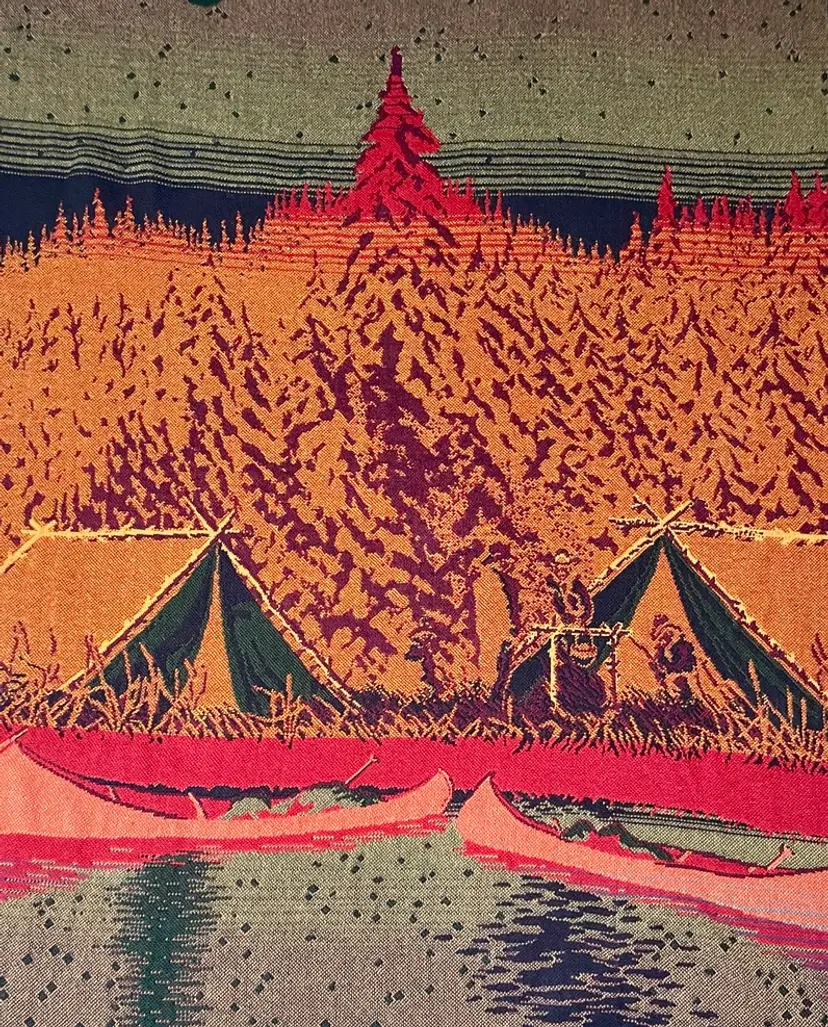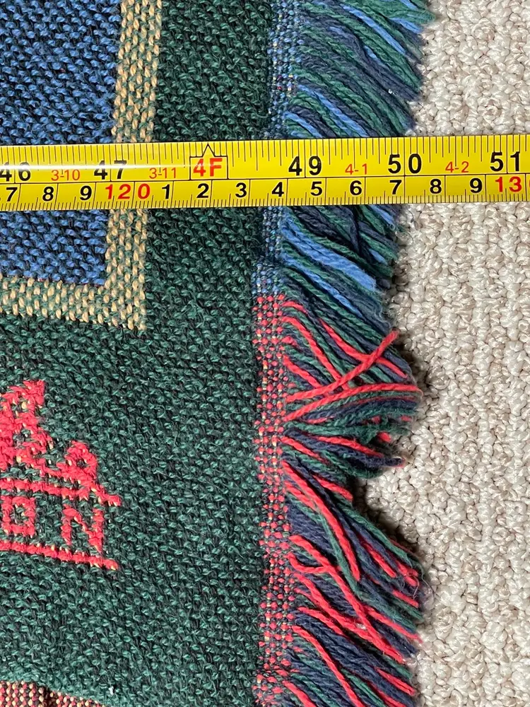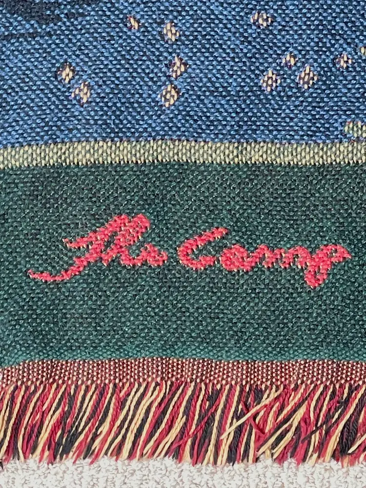 The orange arrow points to the snag in the throw blanket.