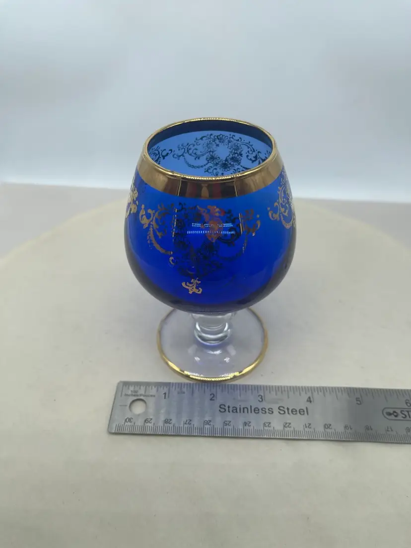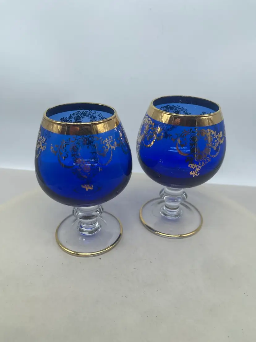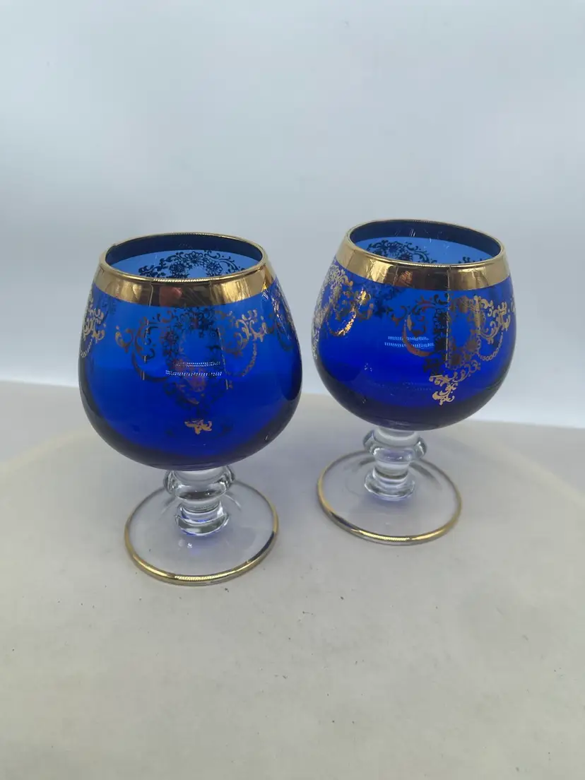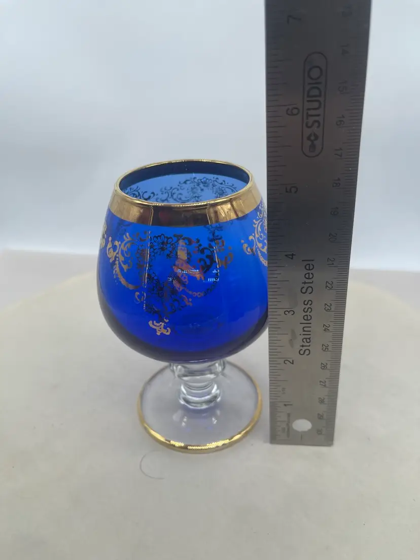 5 x 3.5 inches No chips or cracks These glasses are characteristic of Bohemian glassmaking, which has a rich history dating back to the Middle Ages. The region now known as the Czech Republic became renowned for its glass production, particularly during the 18th and 19th centuries. Bohemian glassmakers were celebrated for their skill in creating intricate designs and vibrant colors.