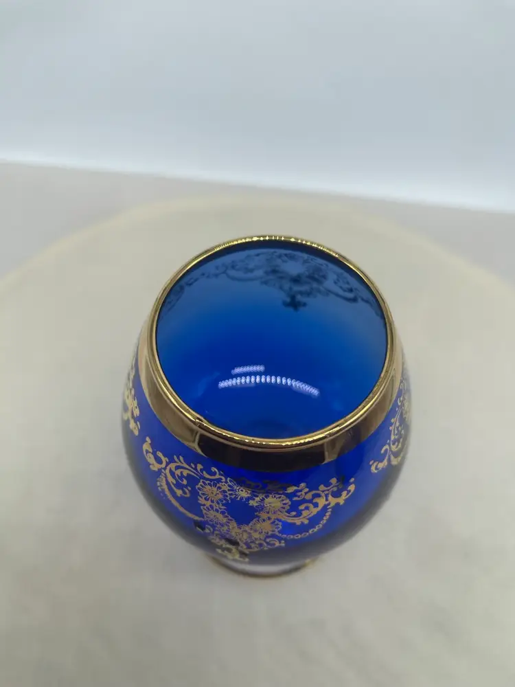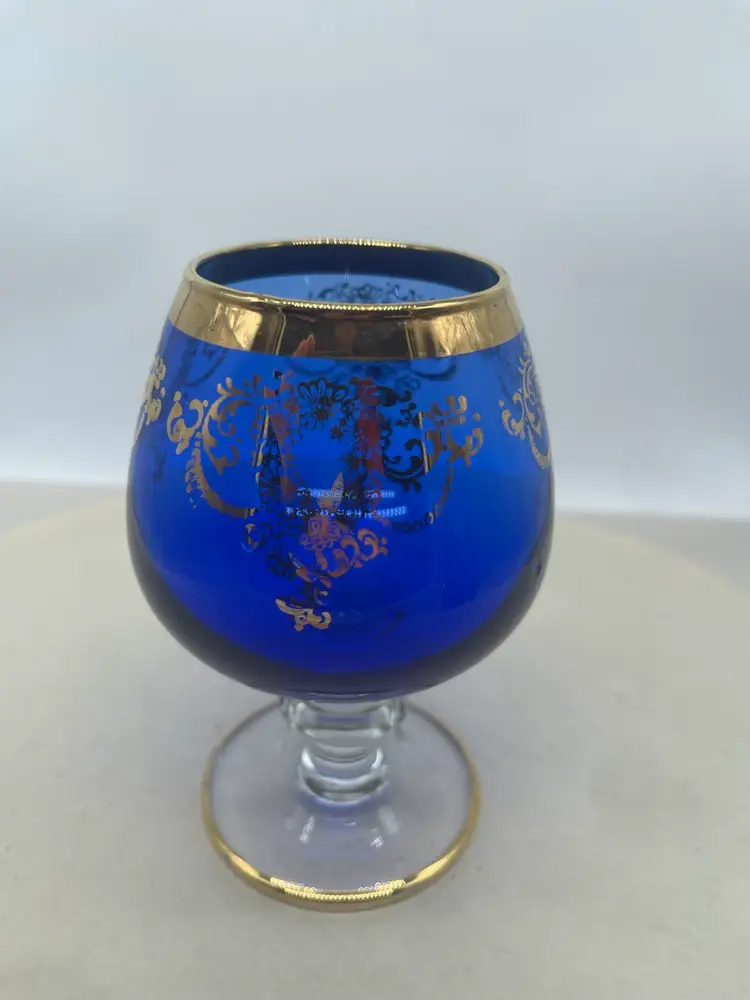 Cobalt blue glass, often adorned with gold accents, was a popular choice for luxury glassware during the 19th century. The combination of the deep blue hue and the shimmering gold created an opulent aesthetic that was highly sought after by wealthy patrons. These glasses would have been used for serving brandy or other fine spirits, adding a touch of elegance to social gatherings.