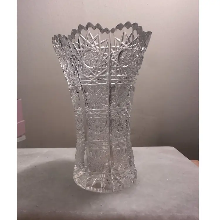 Bohemian Czech Crystal 4.5” Vase Hand Cut Queen Lace 24% Lead Glass