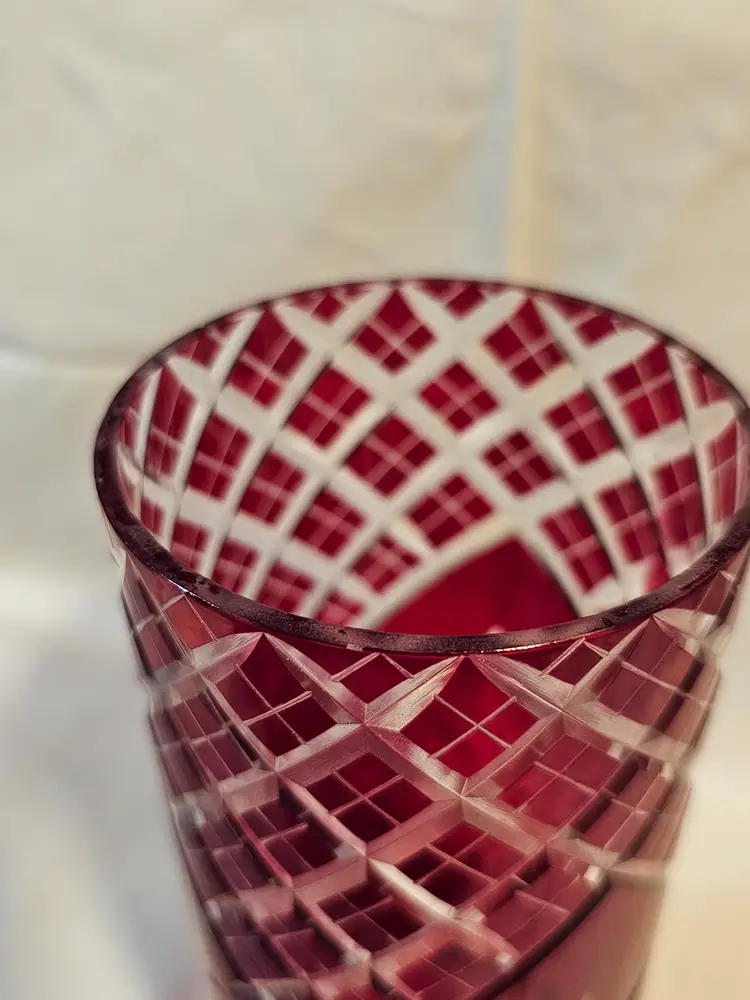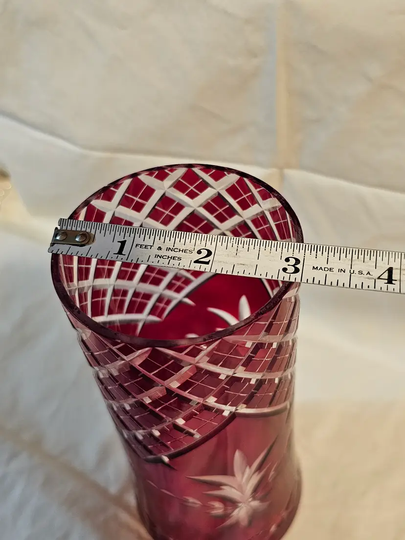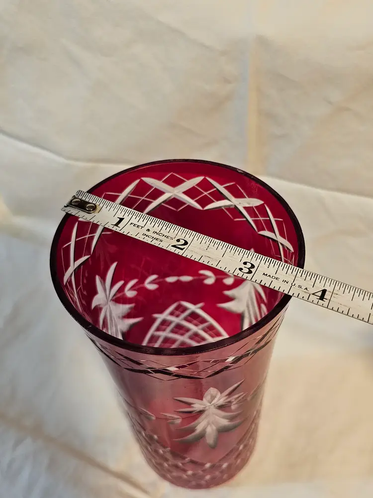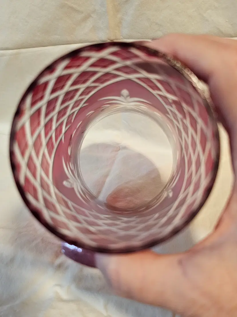 Beautiful and in stunning condition! Bright ruby red color. No chips or cracks not even a flea bite. Really pretty over a flameless candle. Measurements are in pics.