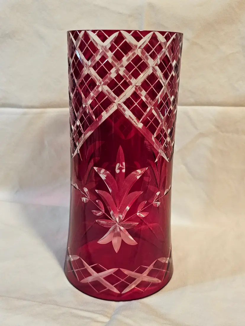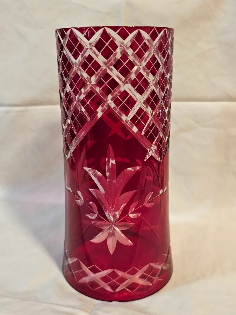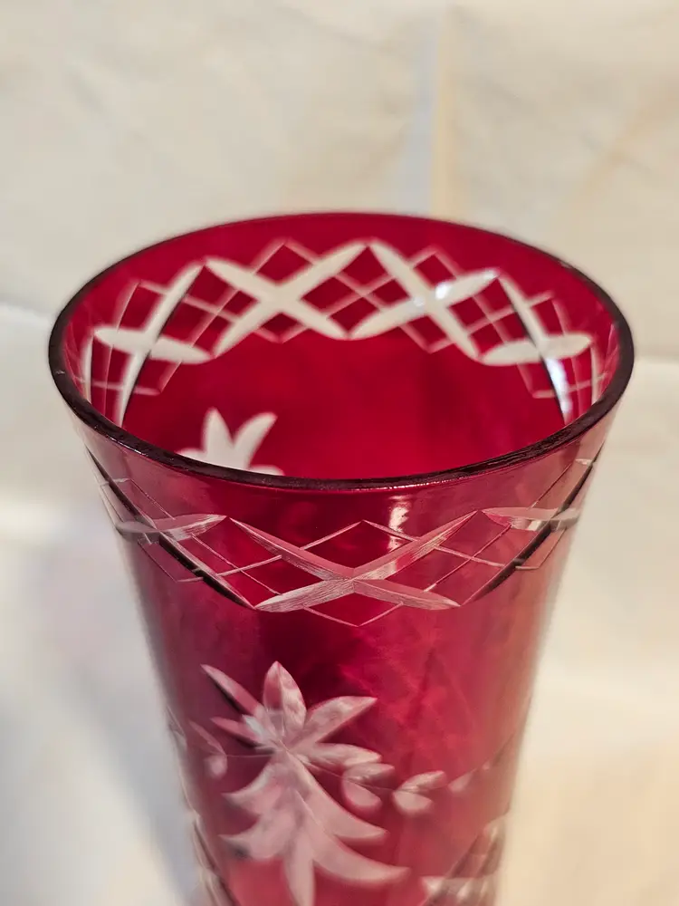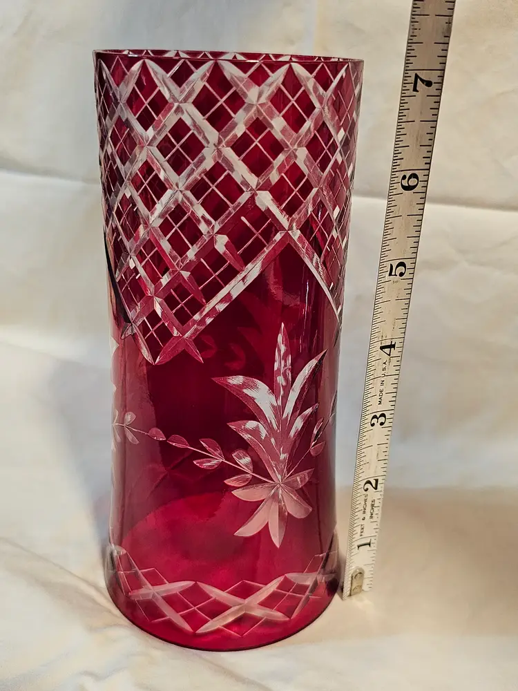 Beautiful and in stunning condition! Bright ruby red color. No chips or cracks not even a flea bite. Really pretty over a flameless candle. Measurements are in pics.