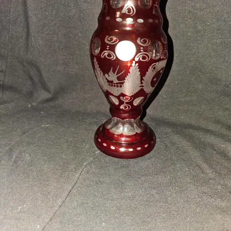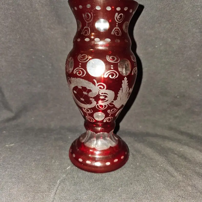 In good condition. Measures about 6" high. Red cut to clear. No chips or cracks.