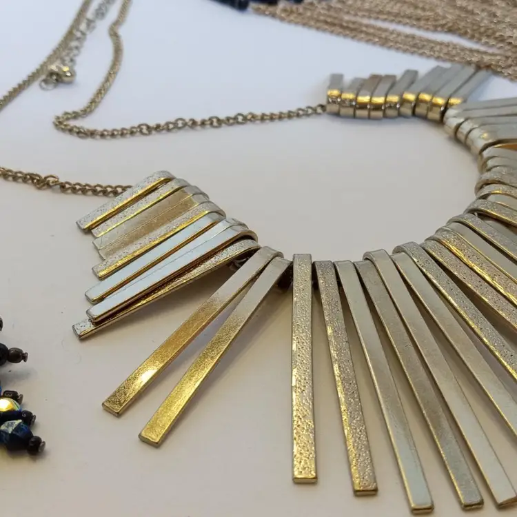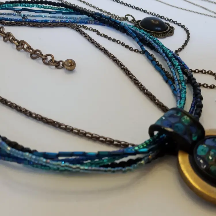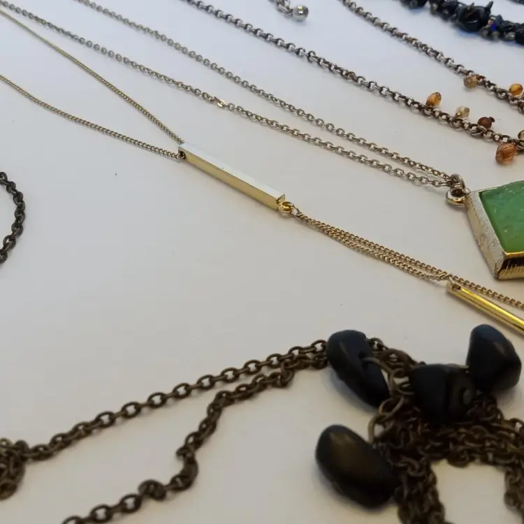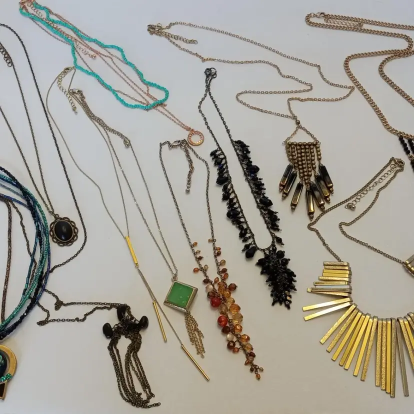 This lot contains eleven wearable necklace pieces. Some pieces show a small amount of wear, but are all wearable. One is marked "Chicos" and the rest are unsigned.
