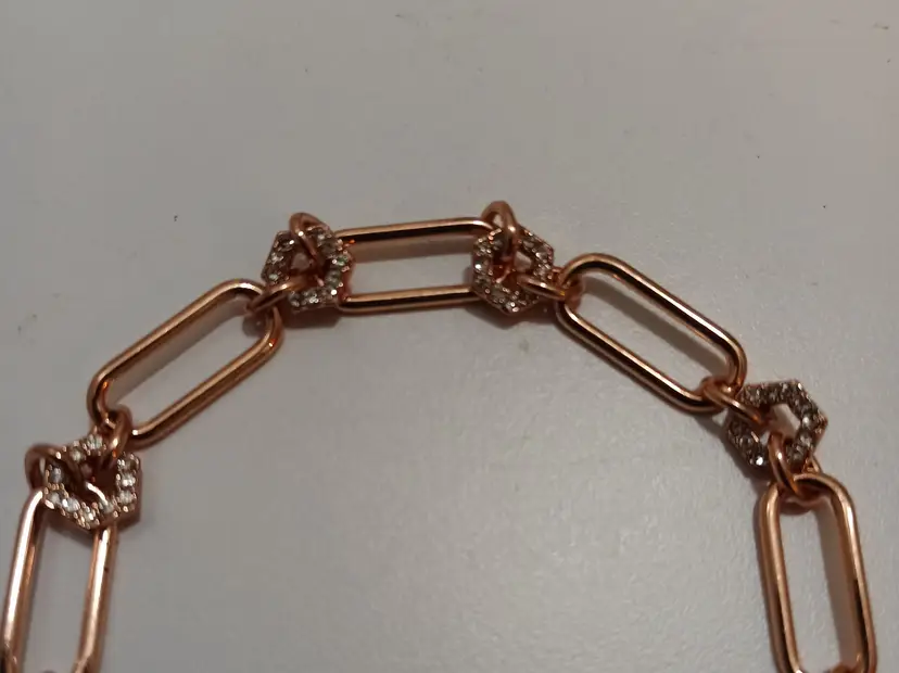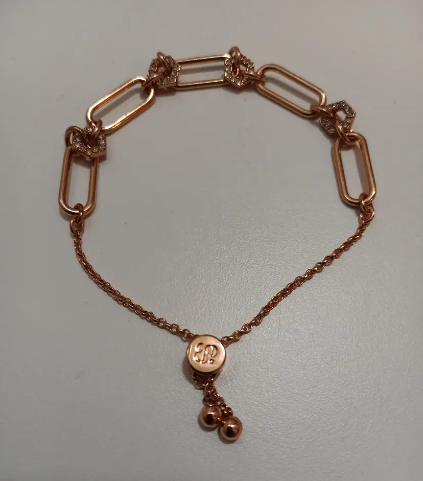 Bomb Party Individual Stacks Bolo Style Pulley Bracelet; Rose Gold Plated; Crystal Embellishment on Links; Like New Condition; Adjustable size.