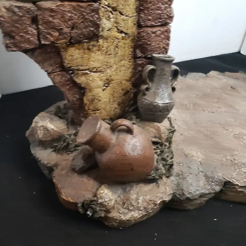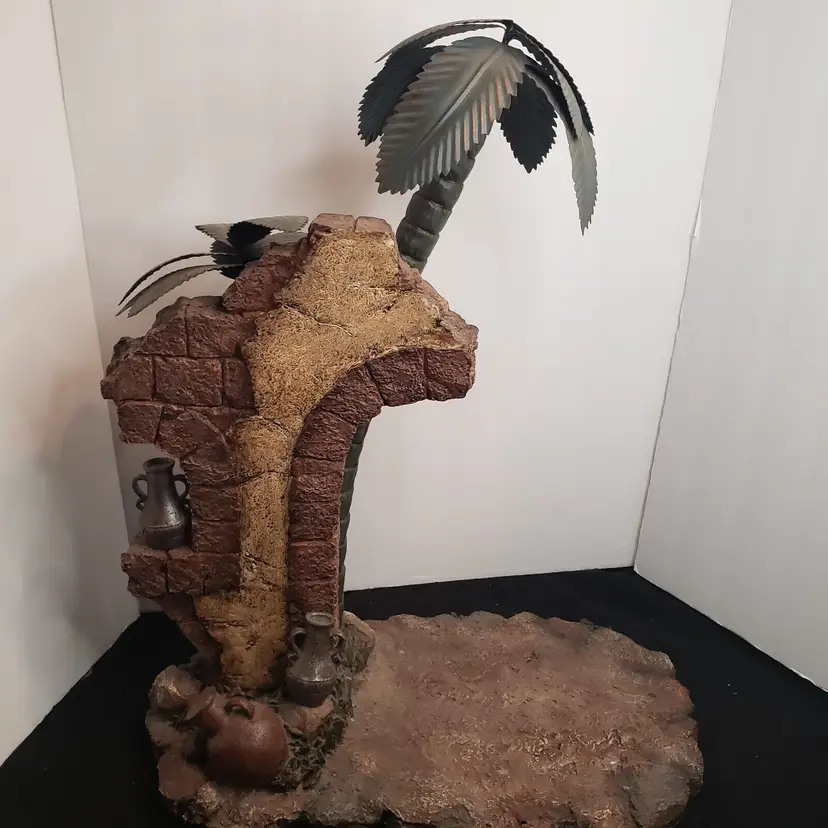 Occasion: Christmas Size: Medium Color: Multicolor Set Includes: Nativity Display Year Manufactured: 2003 Material: Resin Item Length: 16.5” Subject: Palm Tree Brand: The Bombay Company Type: Nativity Stable Item Height: 19.5” Theme: Religious Collection: Nativity Scene Time Period Manufactured: 2000-2009 Country/Region of Manufacture: China Number of Items: 1 Item Width: 10”