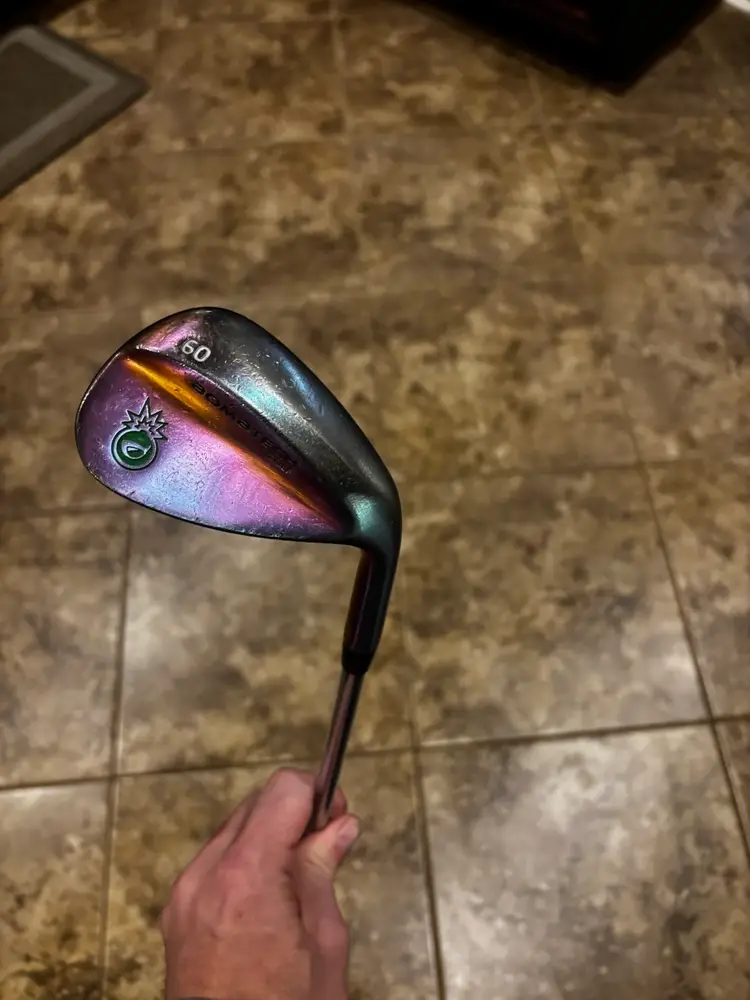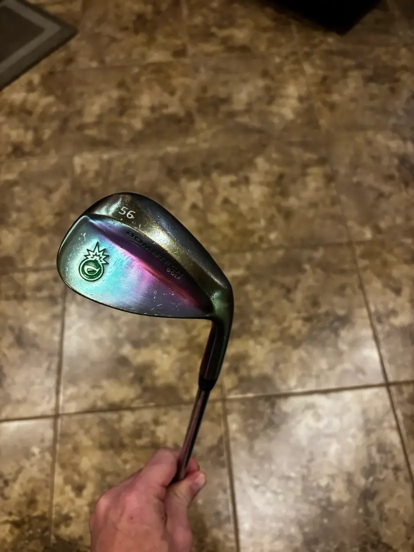 Great condition Bombtech Golf wedges. 52, 56, 60, 72 degree wedges. Limited edition volcano torched finish. In great shape.