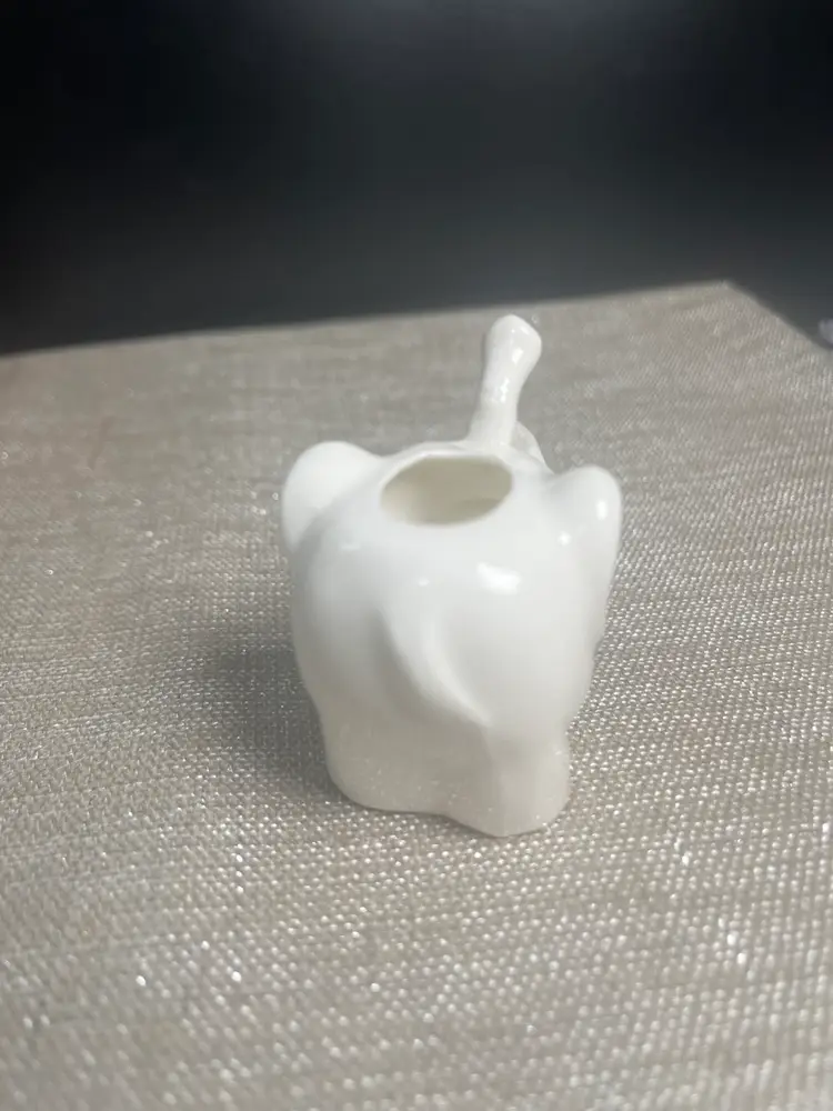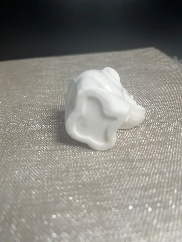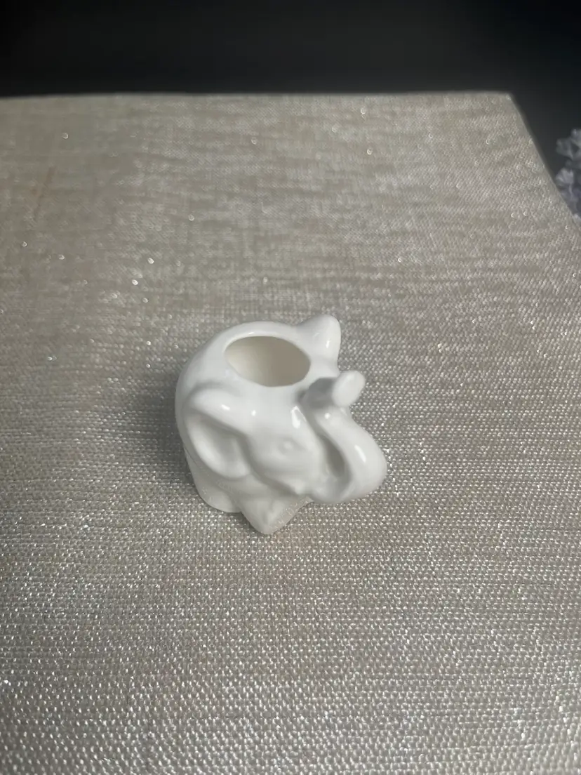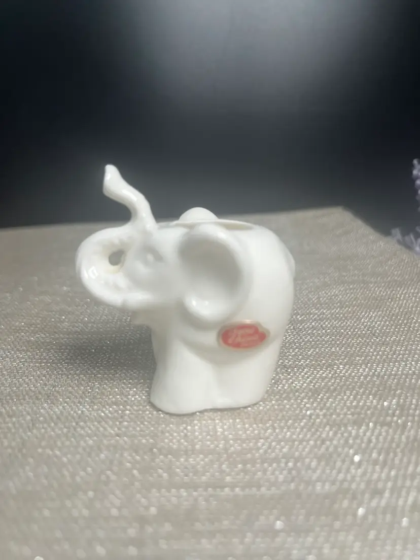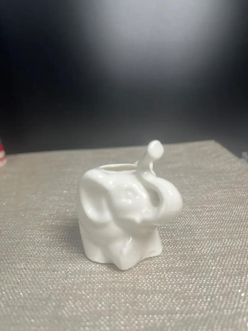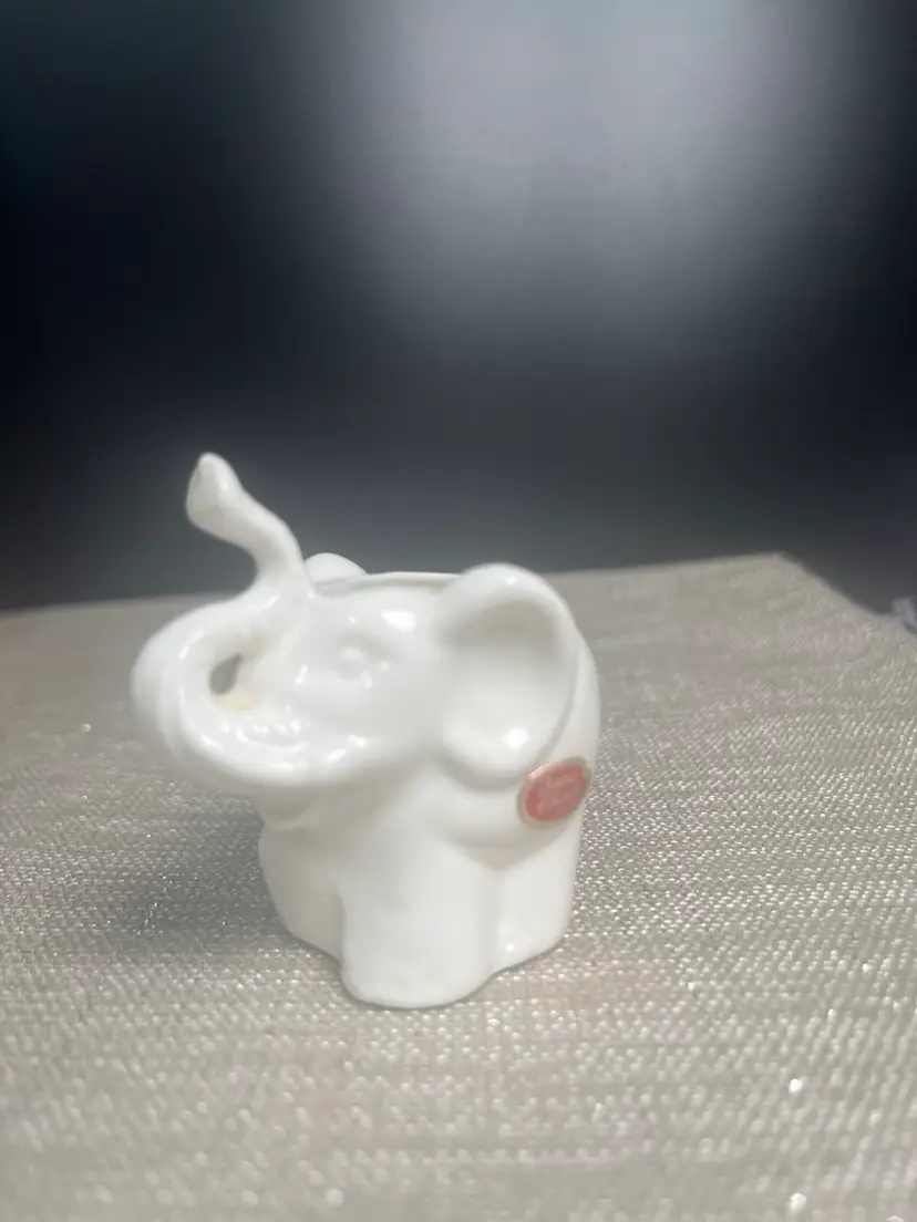 Trunk up! Just a little elephant to brighten your day. He is in excellent condition. He measures approx 2 1/8" H, 2 1/4"L, 1.25"Deep, 1.1 Oz