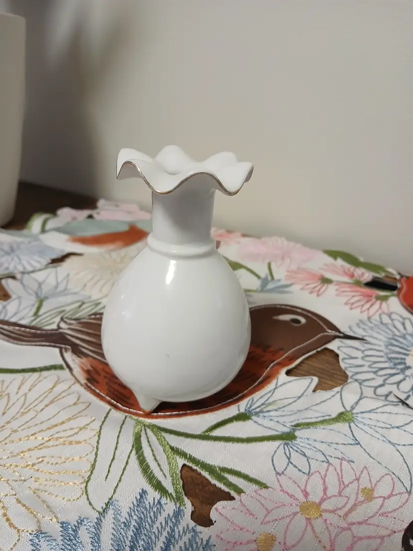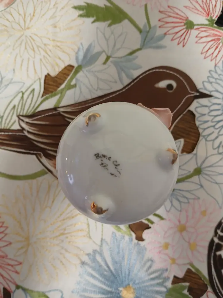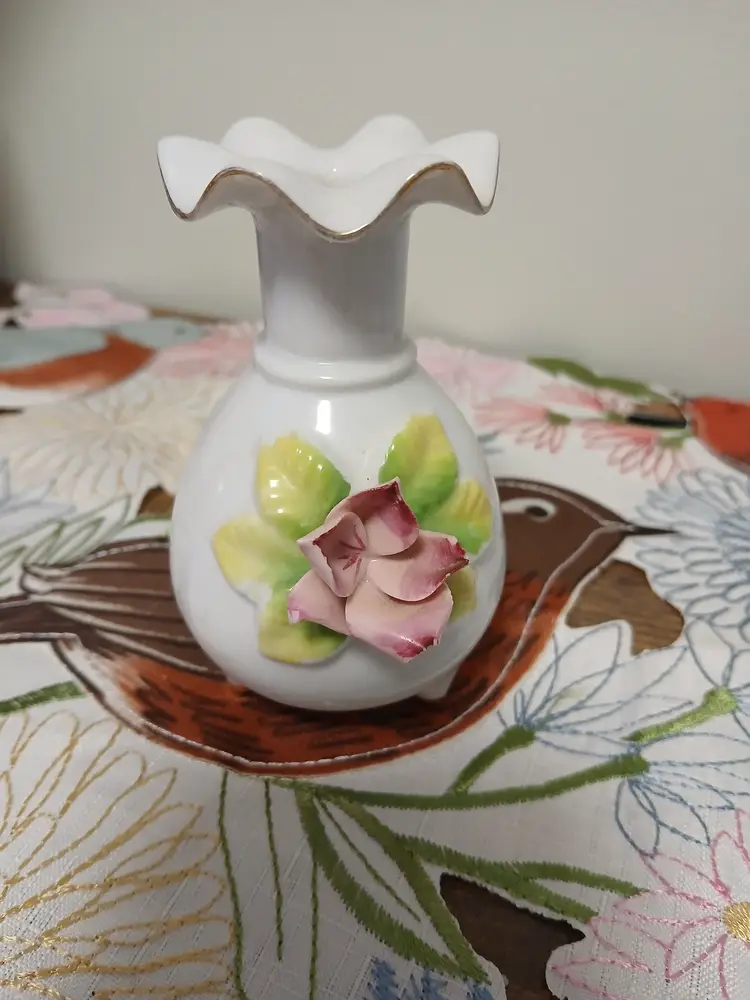 Thames hand painted Vase. Flower is chipped but still usable and pretty. 4" tall 3" wide